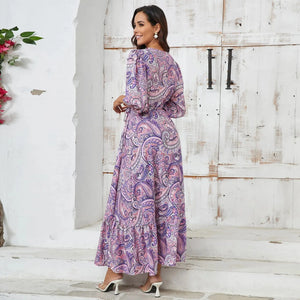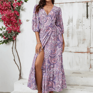Känn dig både fri och elegant i denna lila blommiga klänning. Ett perfekt val för varma dagar och ljumma kvällar, där romantiska detaljer möter bekväm design.
