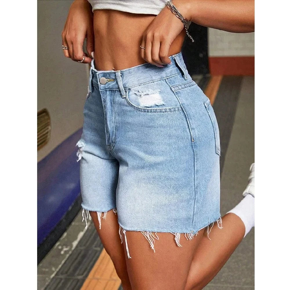 Ljusblå ripped jeans shorts – för en rebellisk sommarlook med attityd