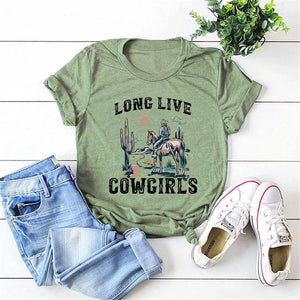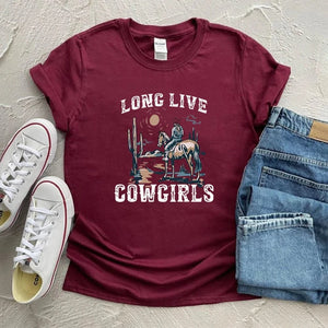 “Long Live Cowgirls” T-shirt – lev ut din vilda västern-dröm med stil