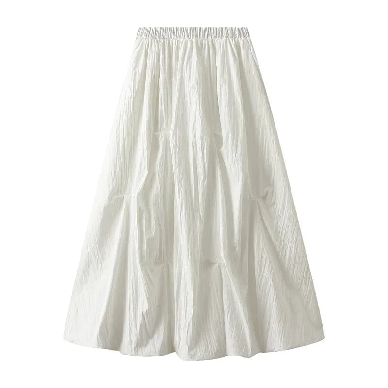Ge din outfit en lekfull elegans med vår midikjol med ballongsilhuett. Den unika volymen skapar ett drömlikt fall som känns både lätt och sofistikerat – perfekt för sommardagar som behöver lite extra charm.