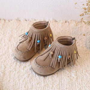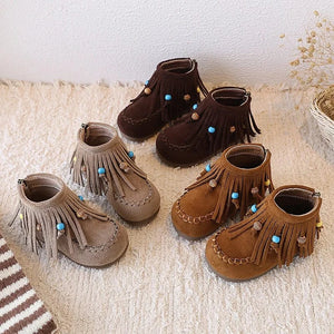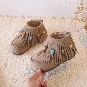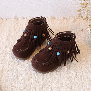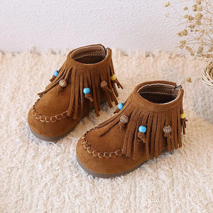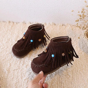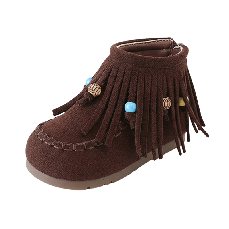 Mockasiner med fransar och pärldetaljer för små cowgirls