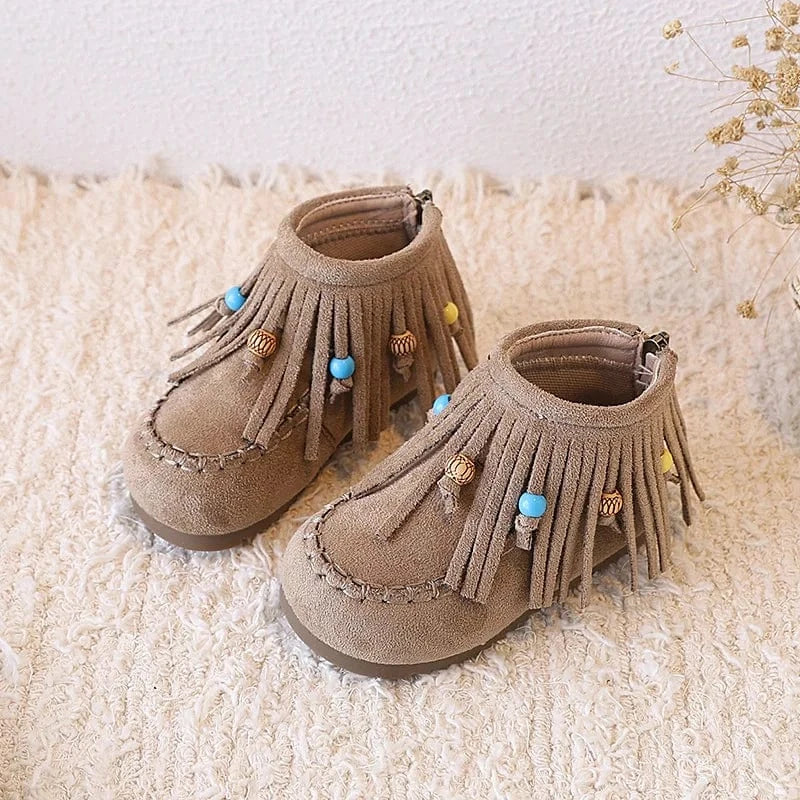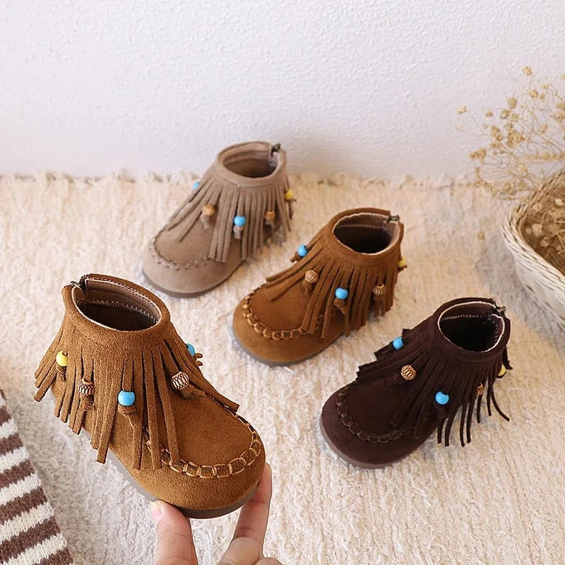 Mockasiner med fransar och pärldetaljer för små cowgirls: perfekt för små äventyrare