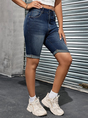 Mörkblå slim jeans shorts – smickrande passform som följer dina rörelser
