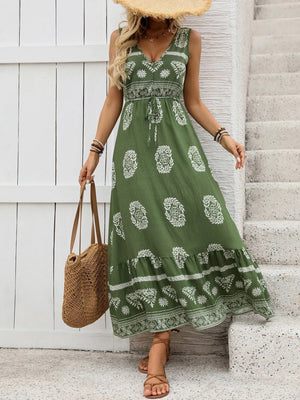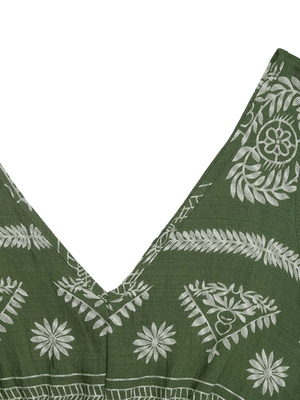 En tidlös och luftig mossgrön klänning som ger dig en avslappnad men stilfull look. Perfekt för varma dagar, strandpromenader eller en kväll ute i sommarbrisen.