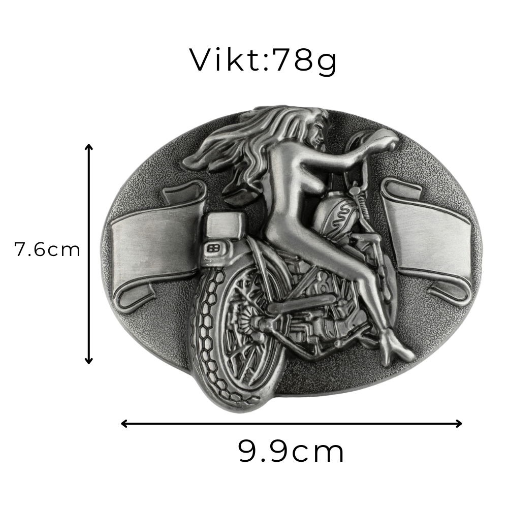 Motorcykel bältesspänne "Pin Up Ryttare"
