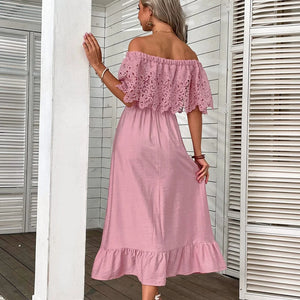 Upplev sommarens frihet med vår off shoulder klänning – ett luftigt och feminint plagg som kombinerar bohemisk charm med sofistikerad enkelhet. Perfekt för både stranddagar, picknickar och sommarfester.