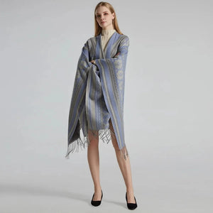 - Mångsidig och chic – använd den som poncho, cape eller sjal – du väljer hur du vill uttrycka din stil.