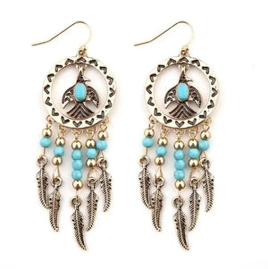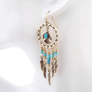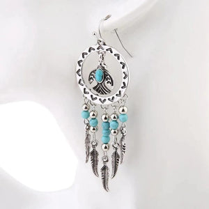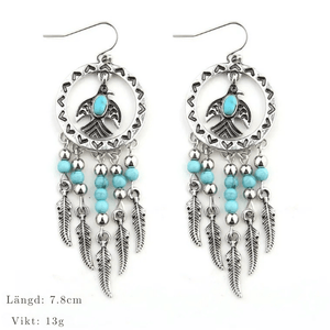 Lätta, svepande och fulla av rörelse – de här örhängena ramar in ansiktet med turkosa accenter och mjuka fjäderdetaljer. Perfekta när du vill ge din look en hint av fri prärivind och stjärnklar natt.