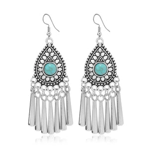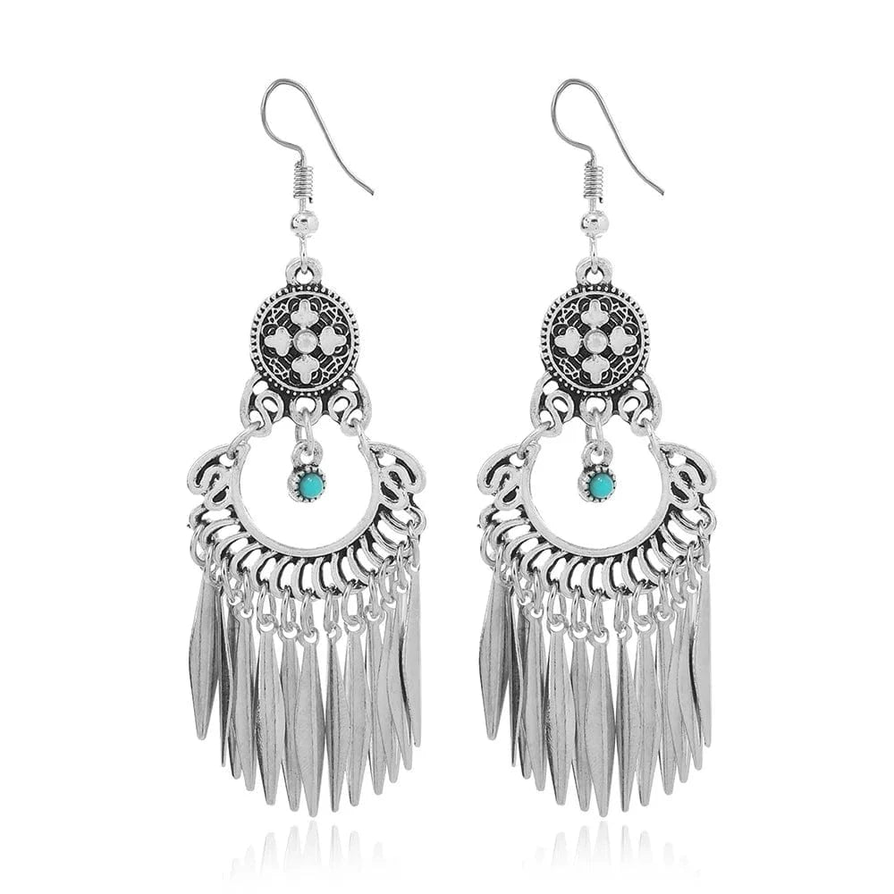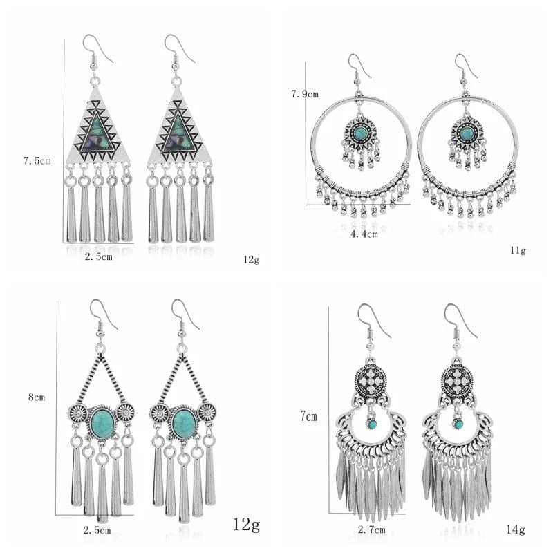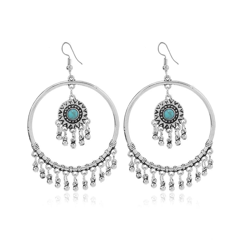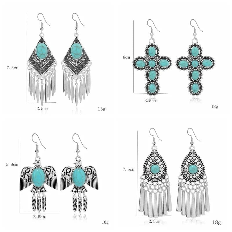 Låt turkos skimra mot silver och rama in ditt ansikte med rörelse och lyster. Dessa boho-inspirerade droppar ger din outfit en självklar westernkänsla – från vardag till dancehall.