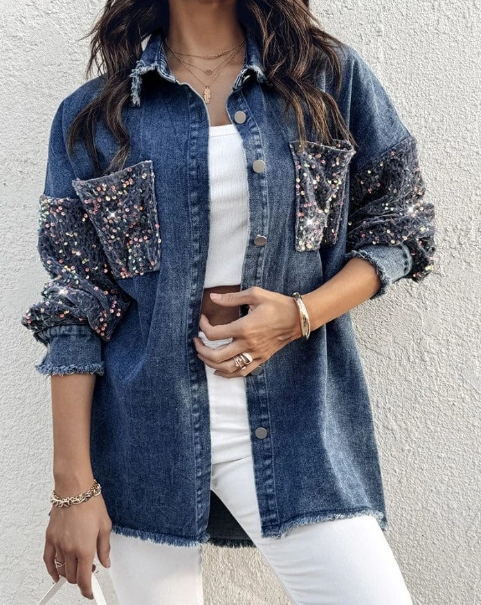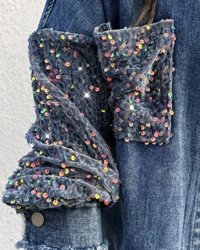 Oversize jeansjacka dam med paljetter – låt din stil glittra med varje steg