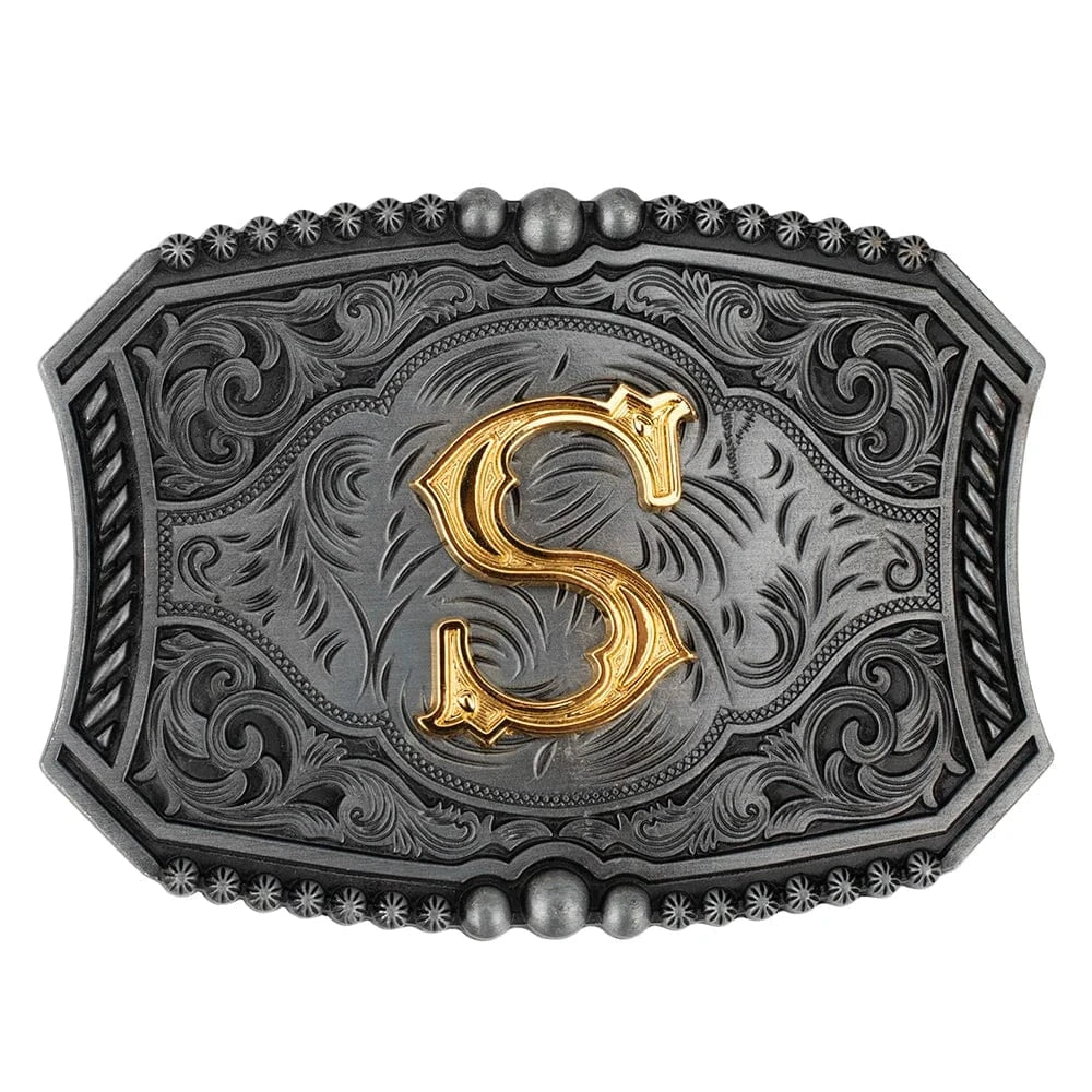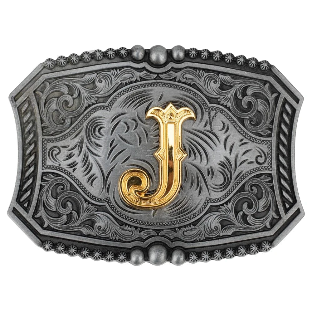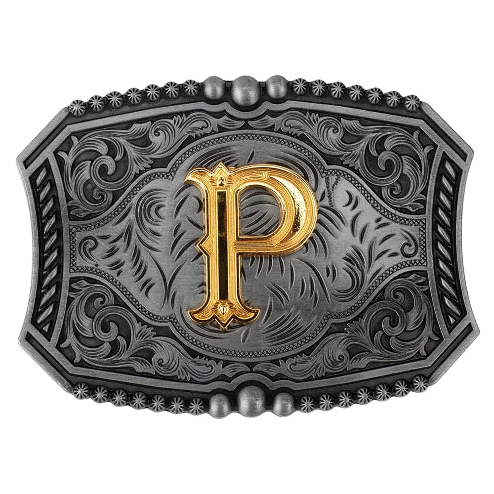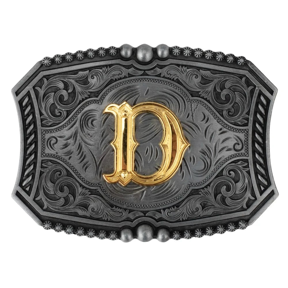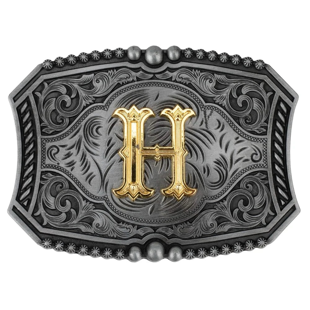 Låt din outfit tala med ett bältesspänne som är lika unikt som du. Den gyllene bokstaven på den mörkt graverade bakgrunden förmedlar både styrka och stil – en perfekt balans mellan personlig touch och klassisk westernkänsla.