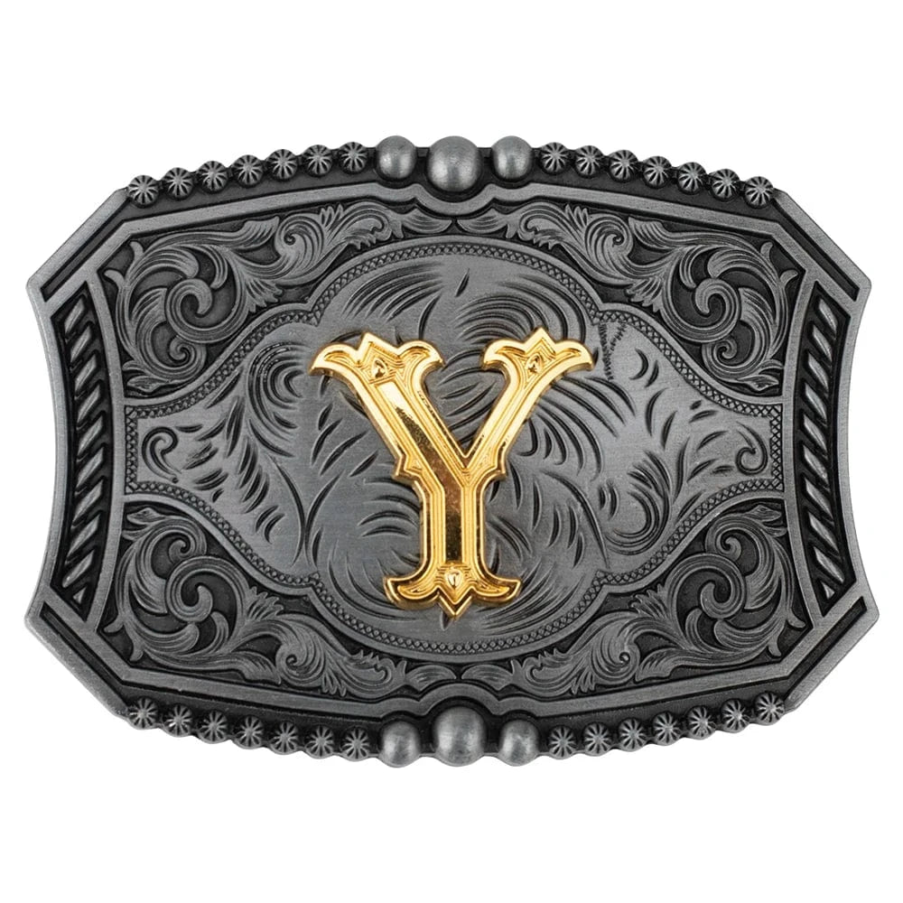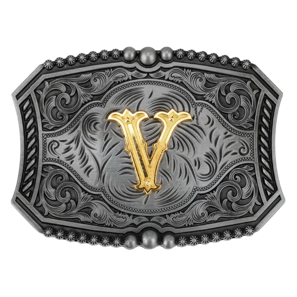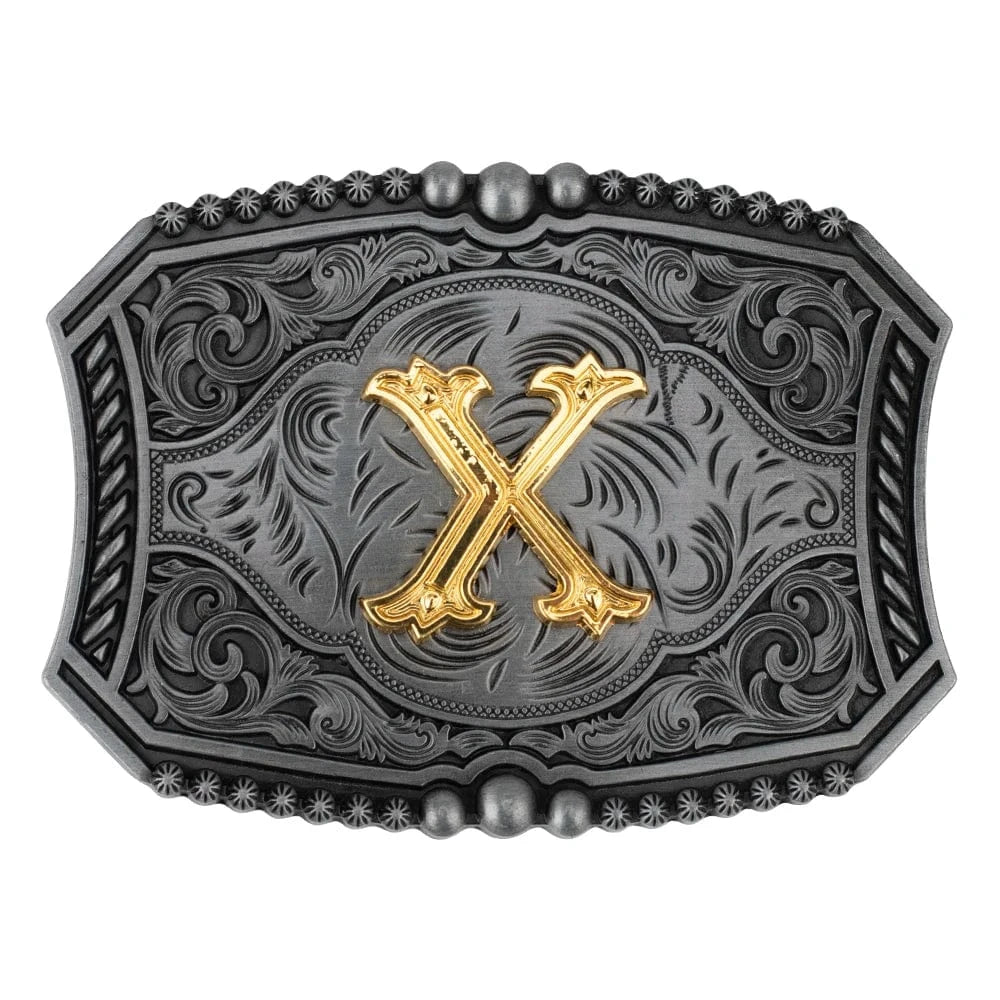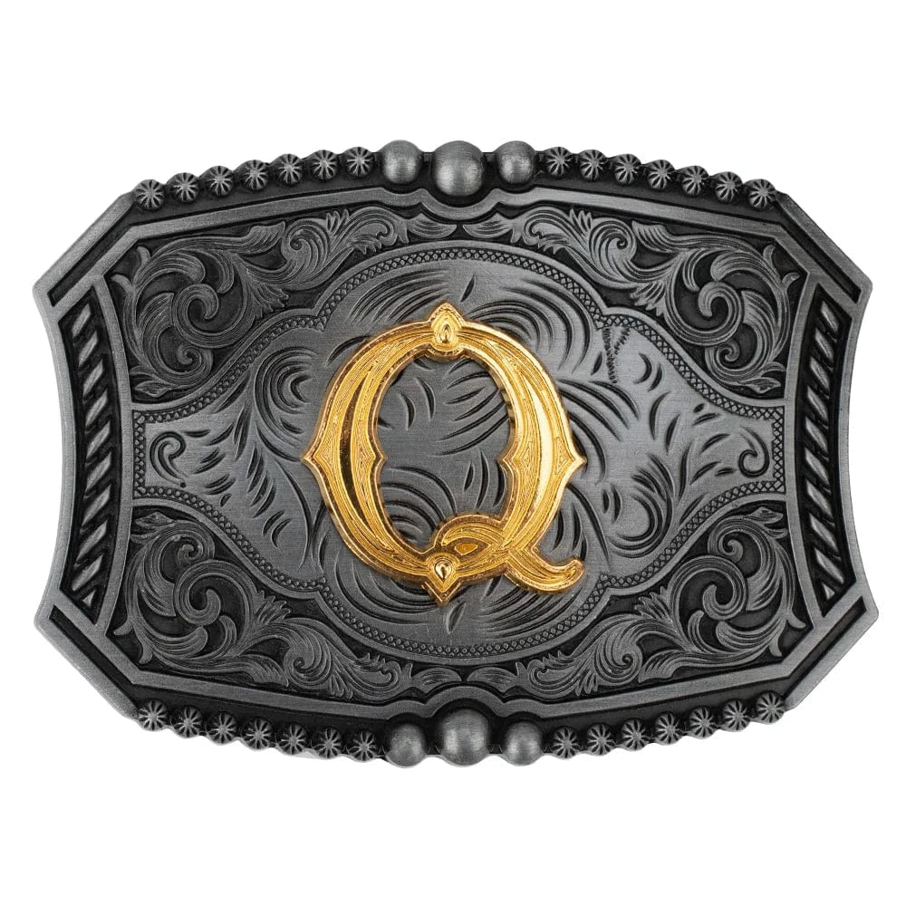 Låt din outfit tala med ett bältesspänne som är lika unikt som du. Den gyllene bokstaven på den mörkt graverade bakgrunden förmedlar både styrka och stil – en perfekt balans mellan personlig touch och klassisk westernkänsla.