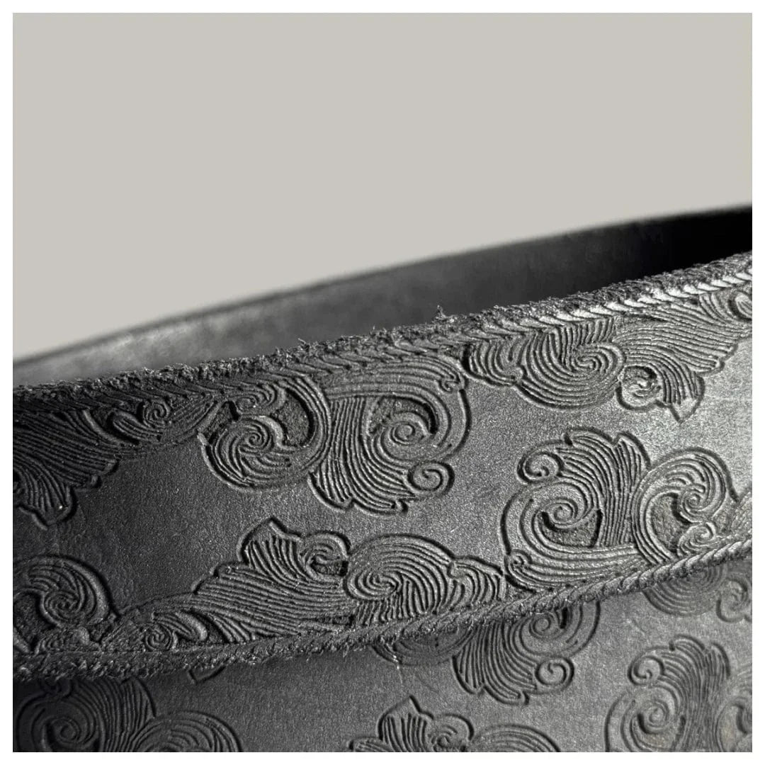 - Unikt präglat mönster – Varje bälte är dekorerat med ett detaljerat, hantverksmässigt blommotiv.