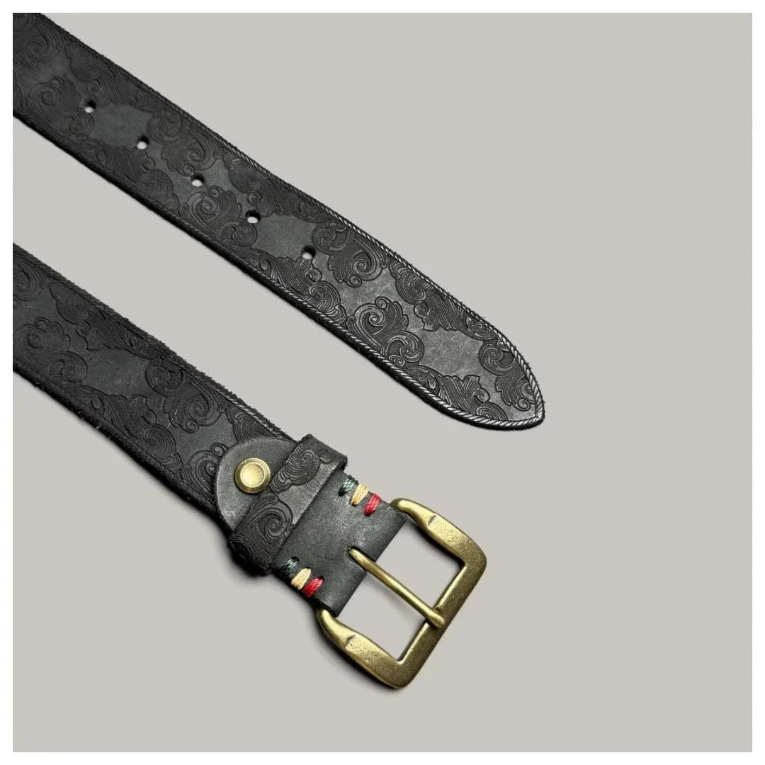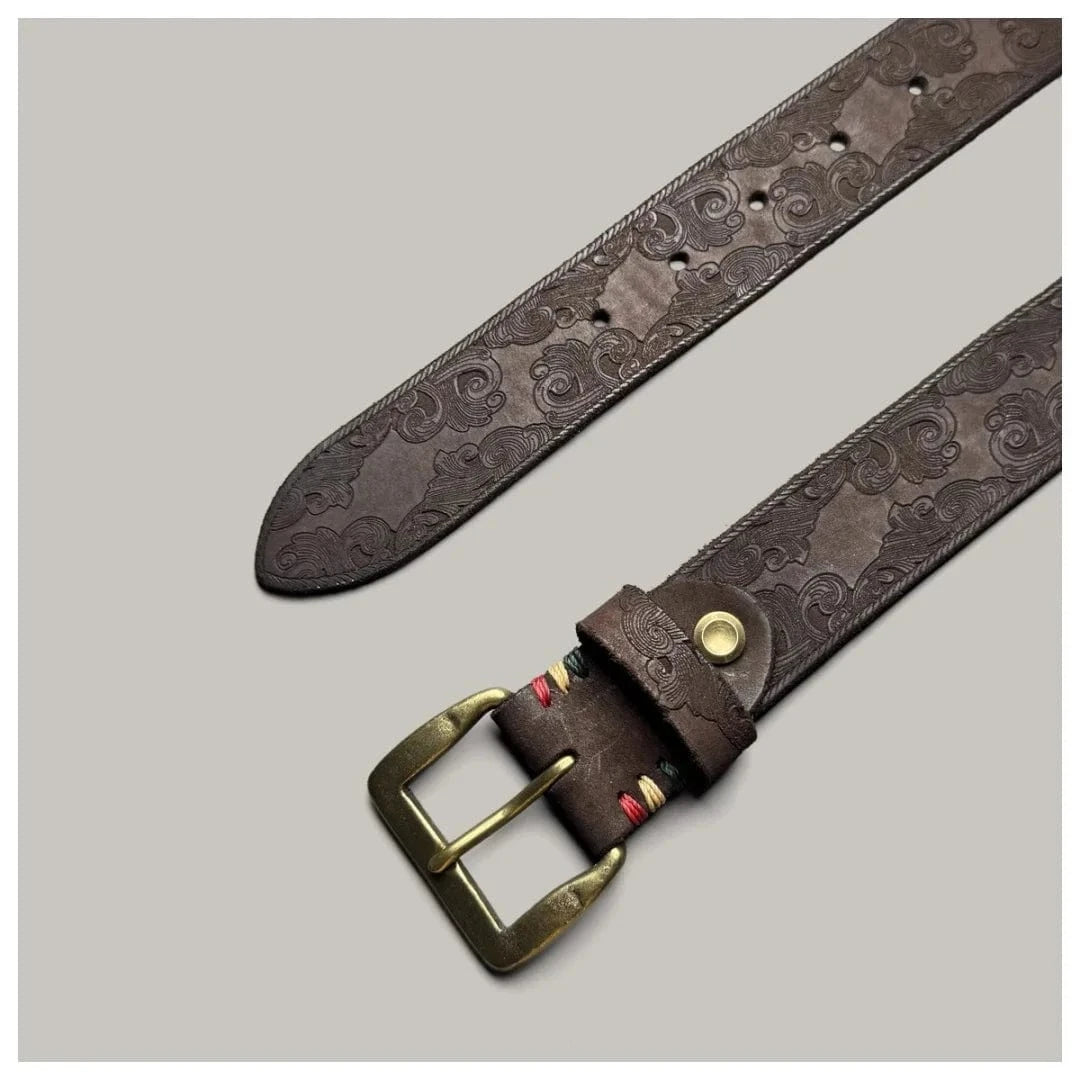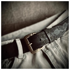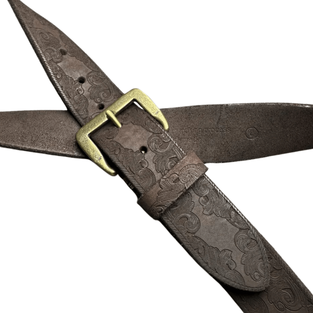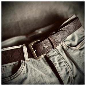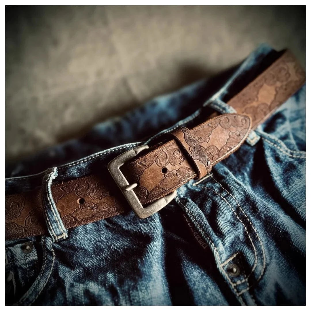 Ge din outfit karaktär med vårt unika präglade cowboybälte i läder