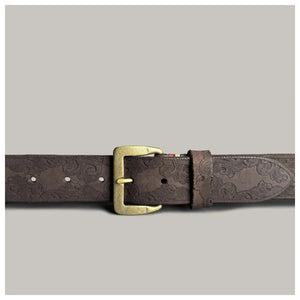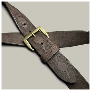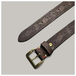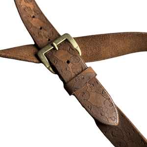 Präglat cowboybälte i äkta läder med mässingsspänne