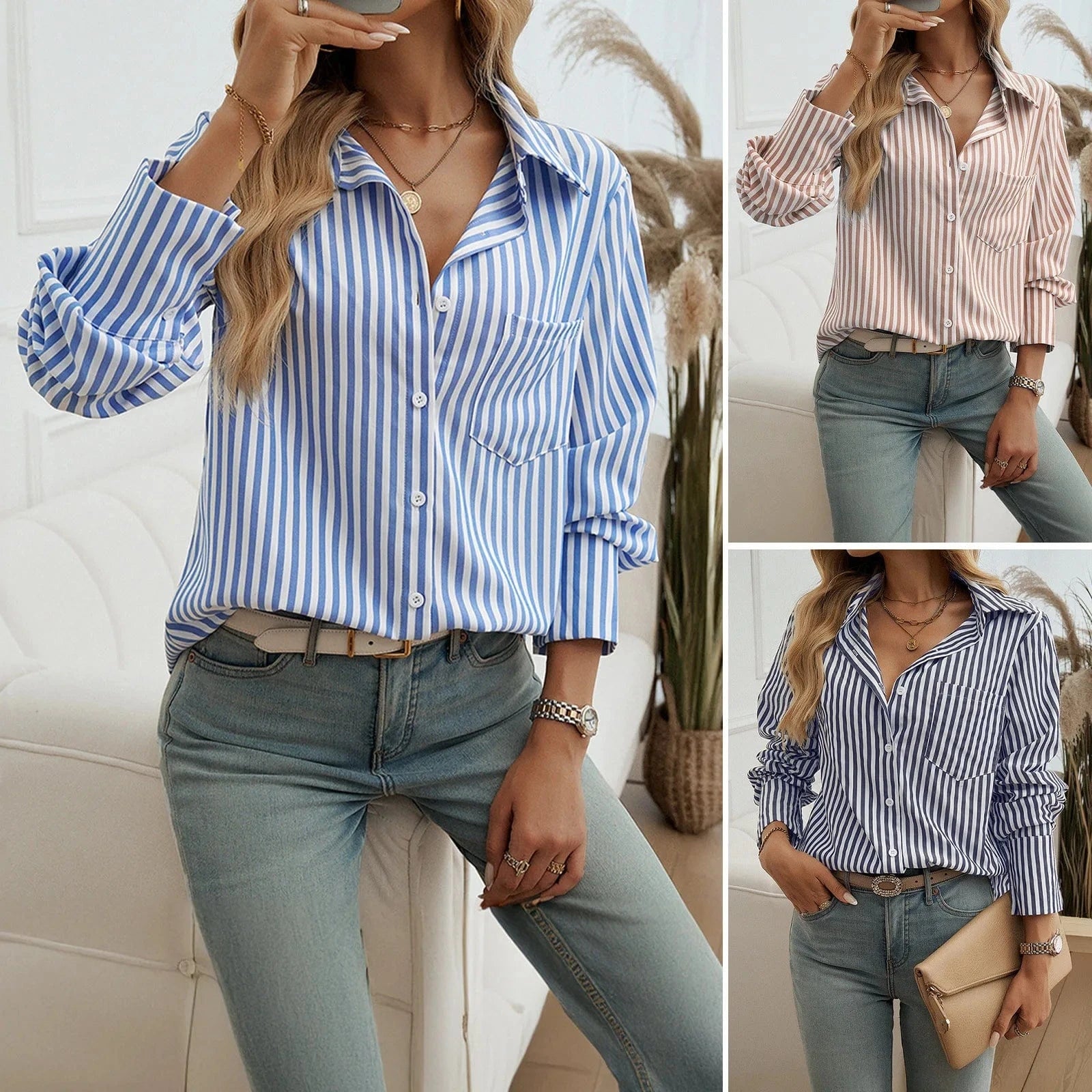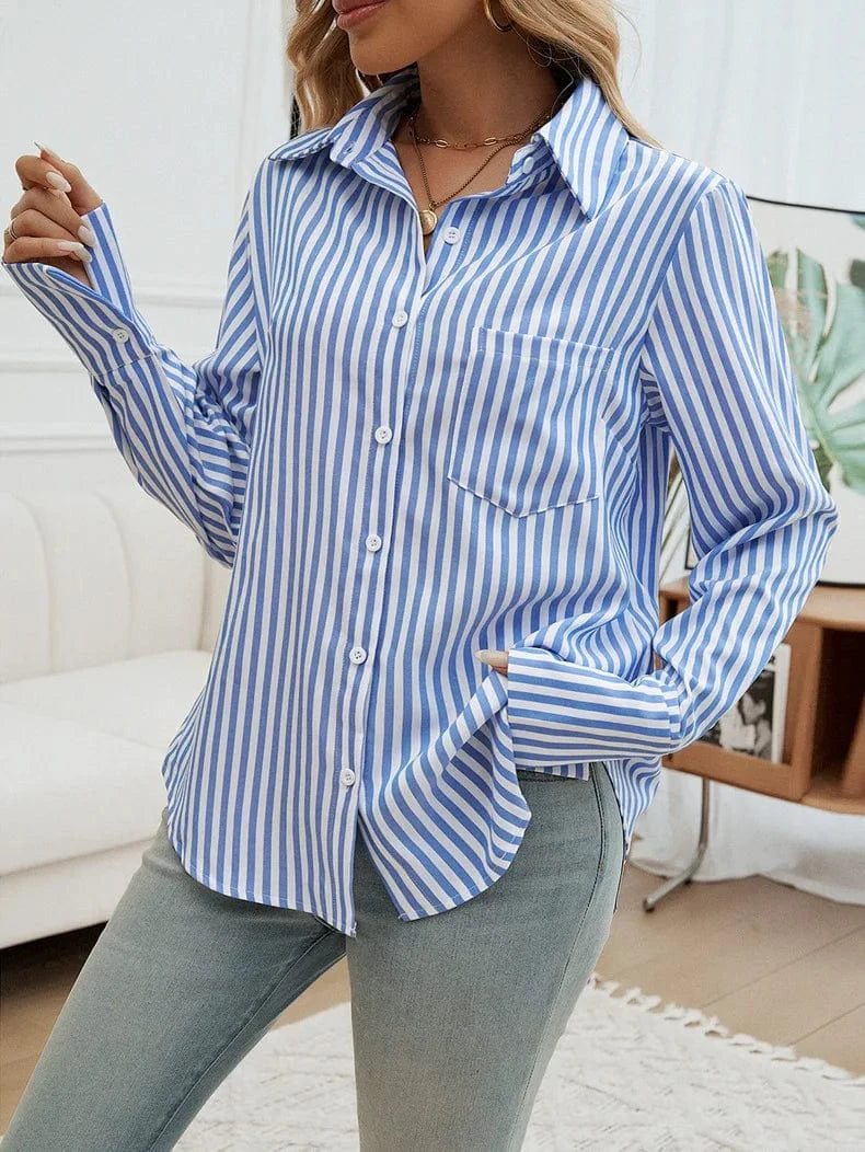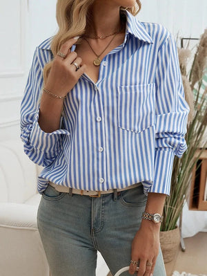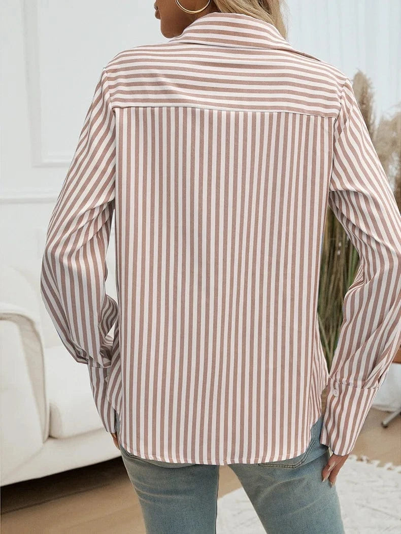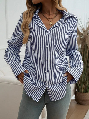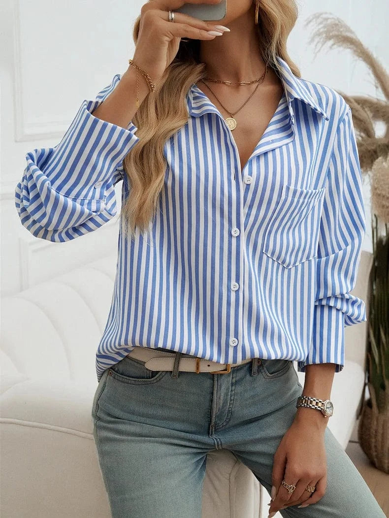 Ge din garderob en uppdaterad klassiker med denna stilrena randiga blus. Perfekt för kontoret, möten eller en chic vardagslook – dess skarpa linjer och bekväma passform gör den till en mångsidig favorit året runt.