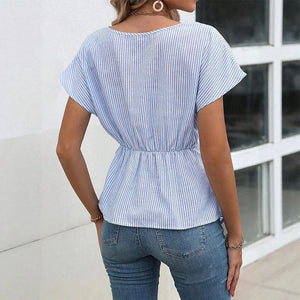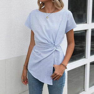 Ge din garderob en touch av sofistikerad enkelhet – klicka hem din randiga blus med knyt idag.