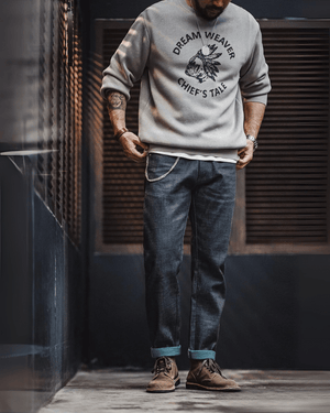 - 100% rå bomullsdenim – 13 oz tungt tyg som utvecklar en unik patina ju mer du bär det.