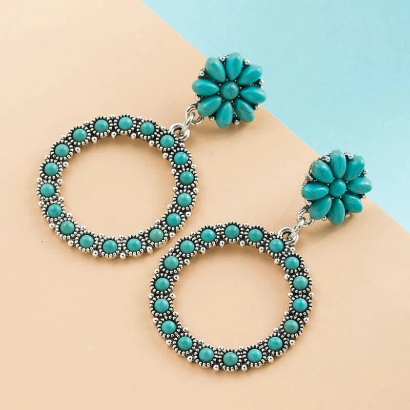Ring örhängen med turkos blomma – boho-glam för din innersta cowgirl