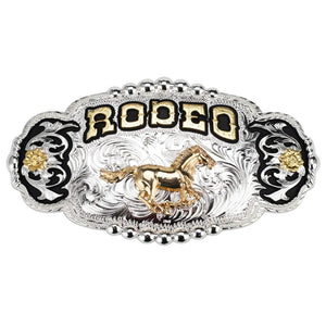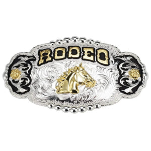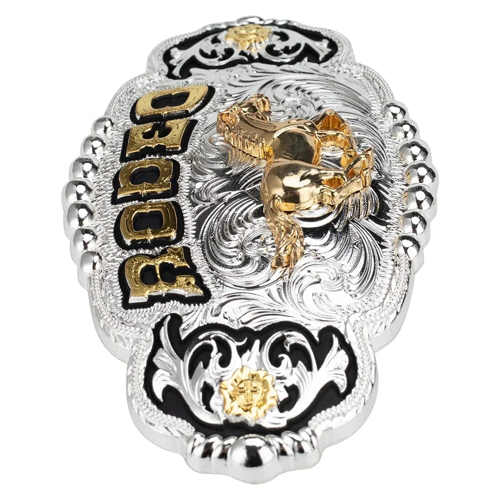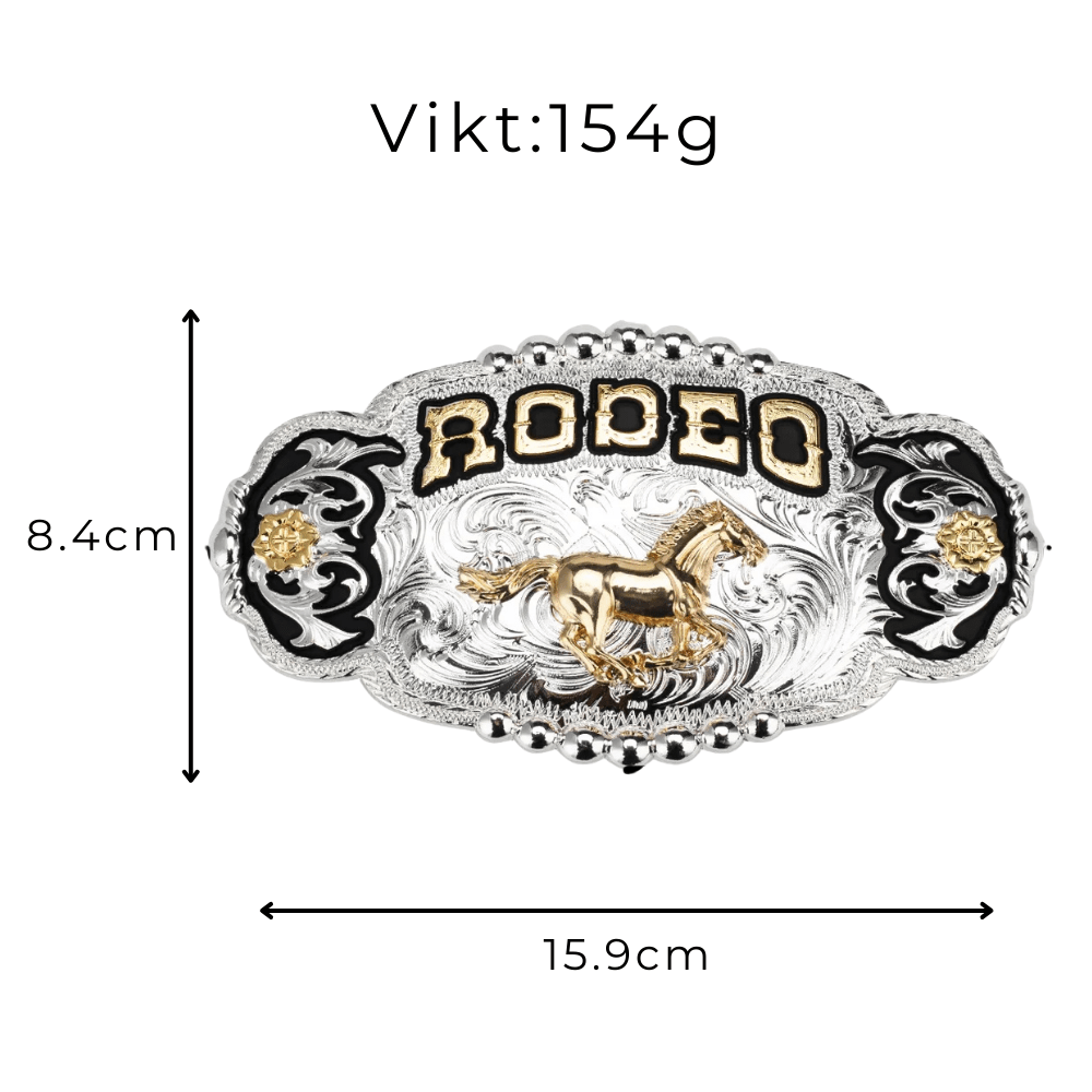 RODEO" Bältesspänne med Guldhäst och Silverdetaljer