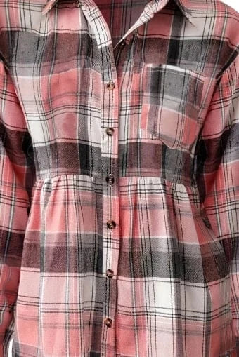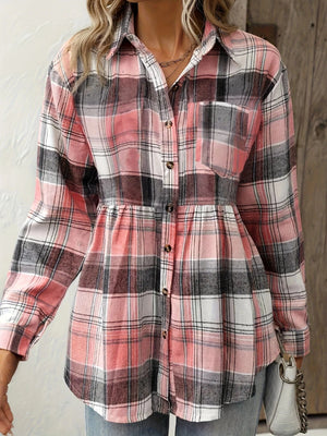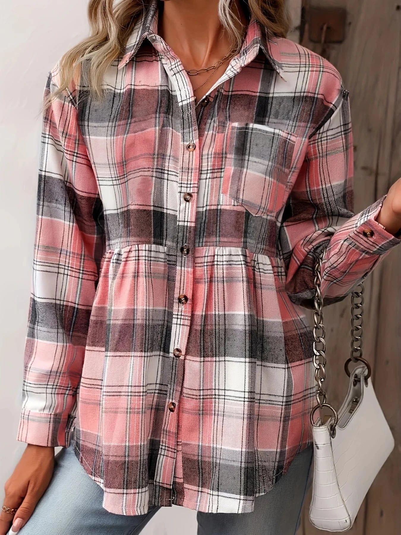 Ge din höststil ett lyft med denna rosa rutiga skjorta – ett perfekt plagg för dig som älskar när avslappnat möter figurnära. Denna skjorta ger en mjuk men markerad silhuett tack vare sin smickrande midjeform, samtidigt som den känns lika bekväm som din favorittröja.