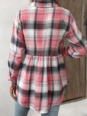 Rosa rutig skjorta med markerad midja – där feminint snitt möter vardagskomfort