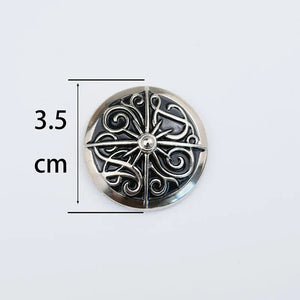 Låt din kreativitet flöda med denna unika, runda concho – perfekt för att ge liv åt dina läderprojekt, hattar eller bälten. Den detaljrika designen i zinklegering kombinerar både funktion och elegans, och skruvfunktionen gör monteringen enkel.