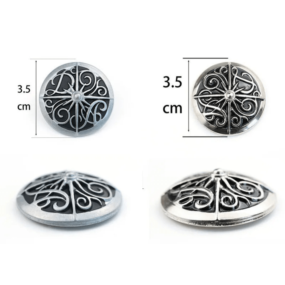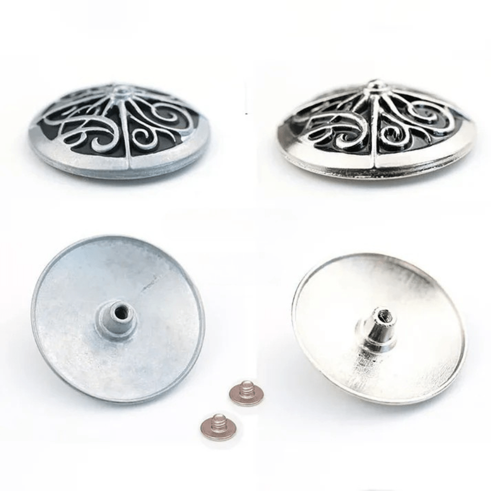 - Användning: Dekorativ knapp för hattar, bälten, väskor, läderprojekt