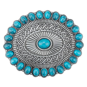 Rund Turkis Concho Bältesspänne Mönstrad Ram Antik Silver – din bohemiska westernaccessoar