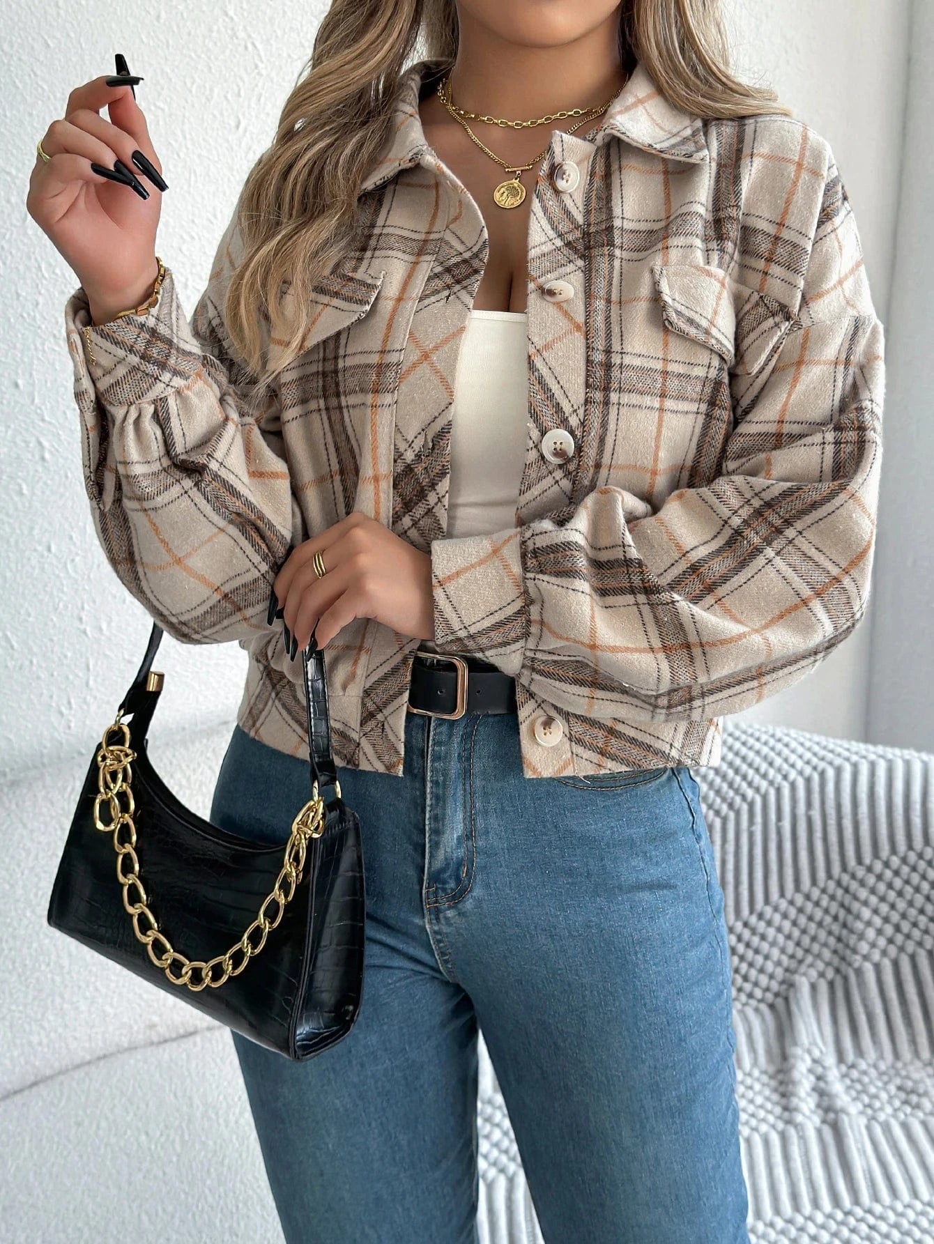 Gör varje höstdag lite mer trendig med vår rutiga cropped överskjorta för dam – perfekt balanserad mellan struktur och mjukhet. Oavsett om du bär den över en enkel topp eller låter den stå för hela looken, kommer den att bli din nya go-to under säsongens kyligare dagar.