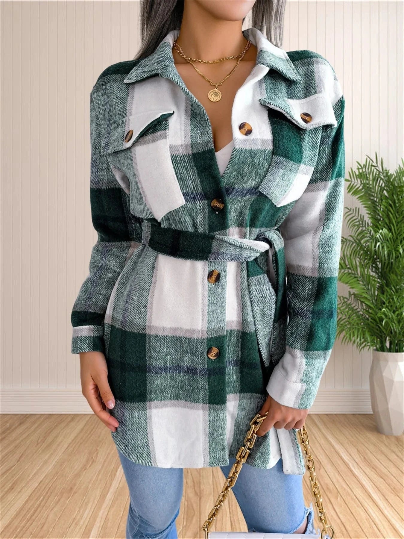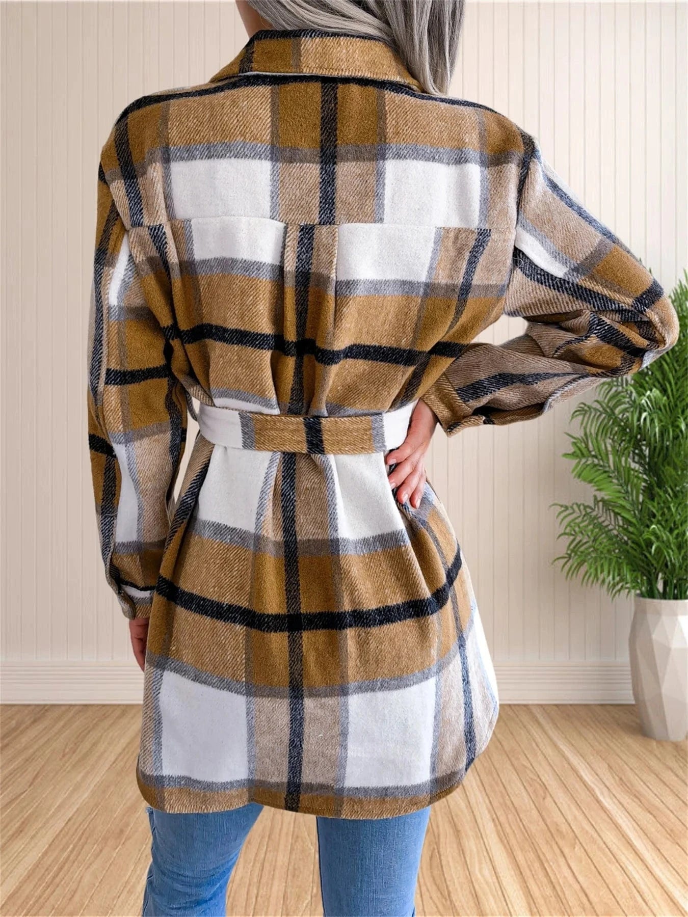 Rutig överskjorta med skärp – definiera din höststil med självsäkerhet