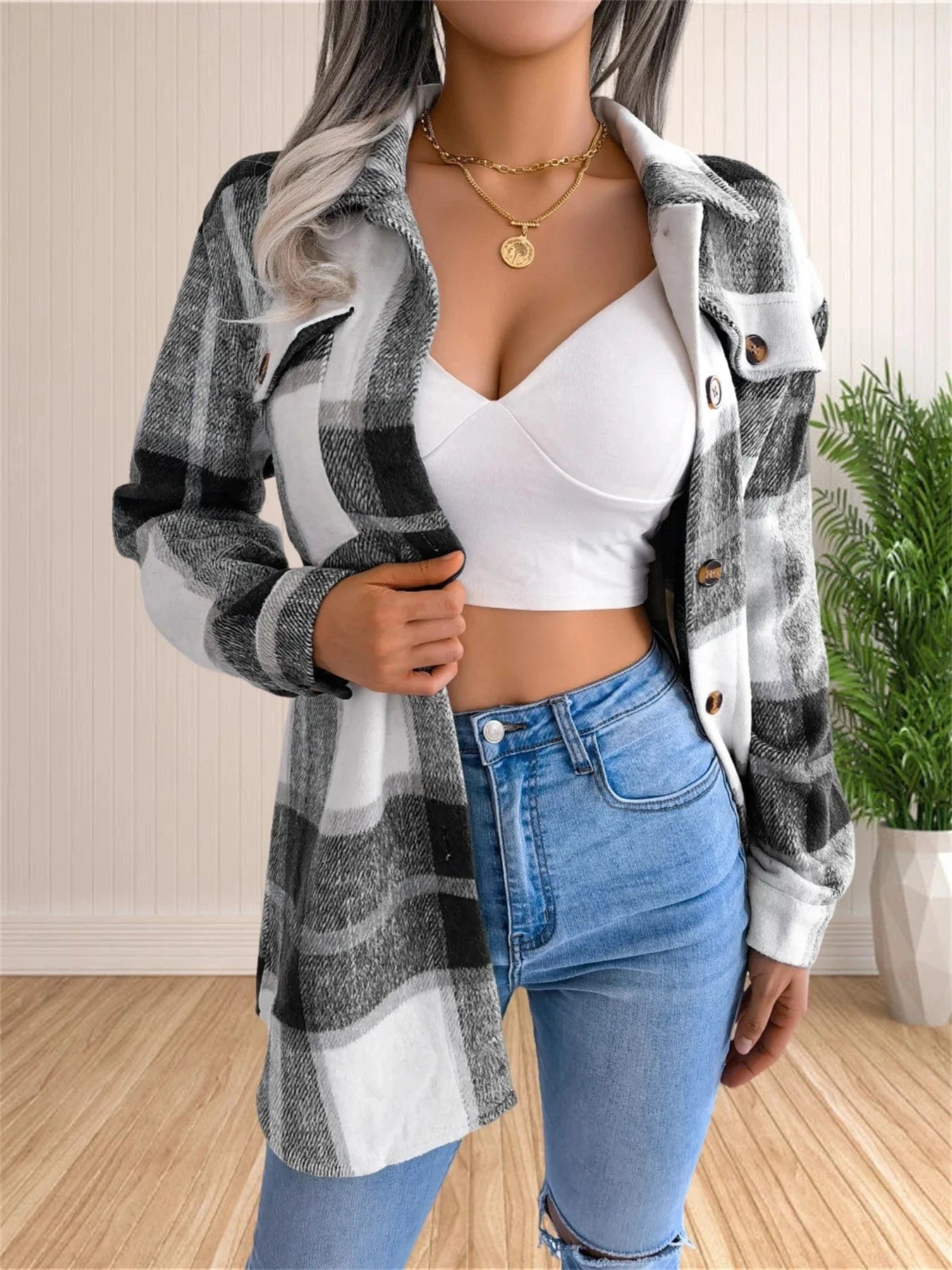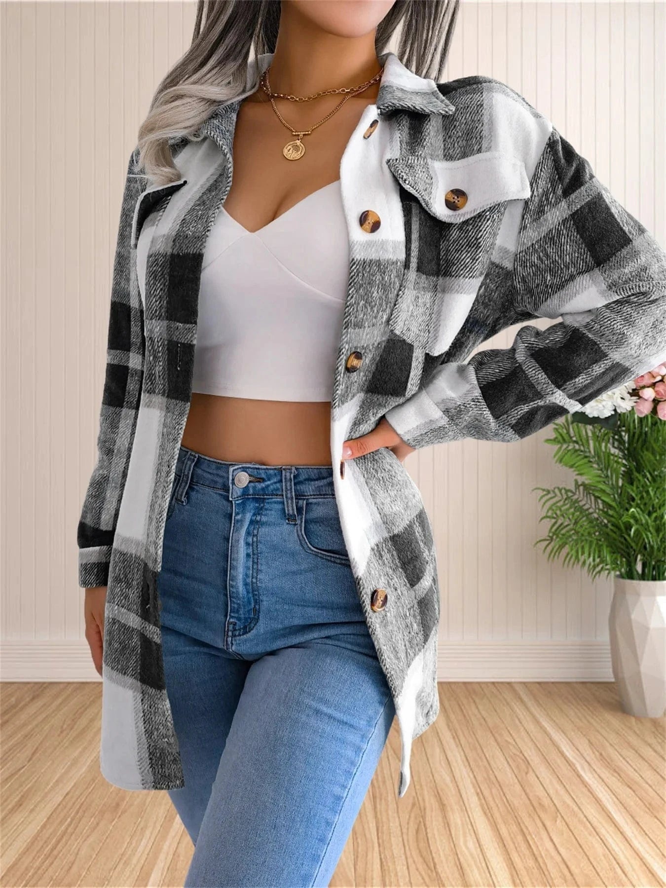 En skjorta, en jacka, ett modestatement. Denna rutiga överskjorta med skärp är mer än bara ett plagg – den är en nyckel till en balanserad och trendig höstgarderob. Smickrande, funktionell och med en touch av modern elegans.