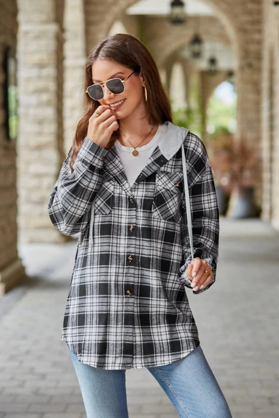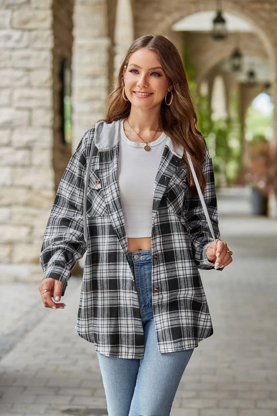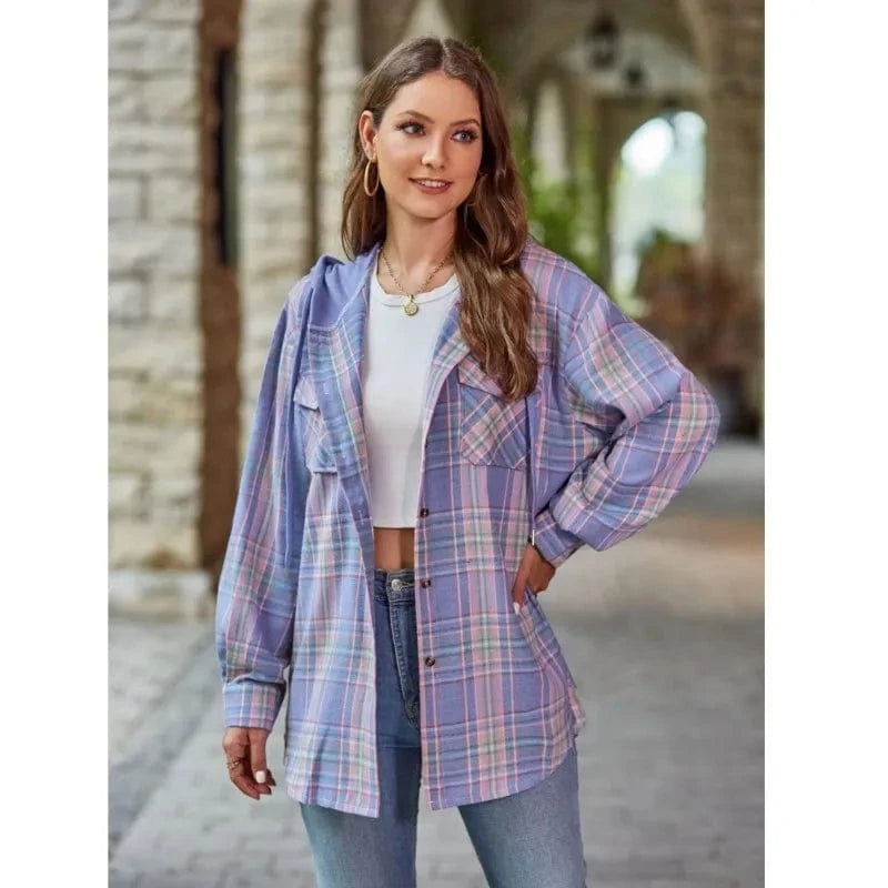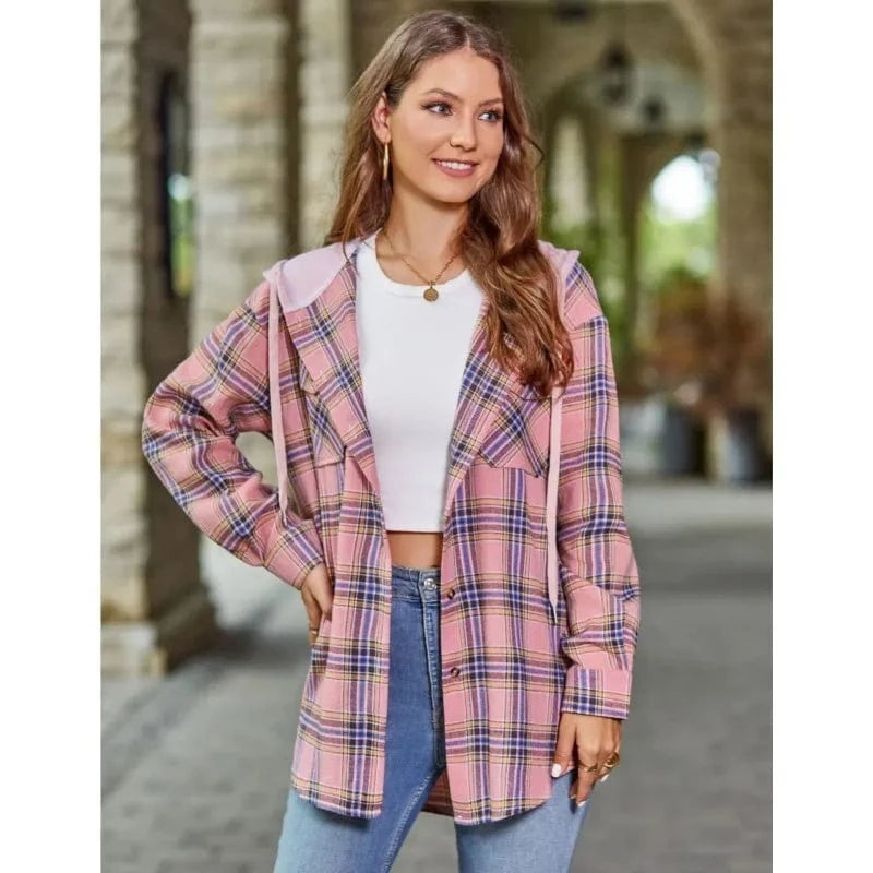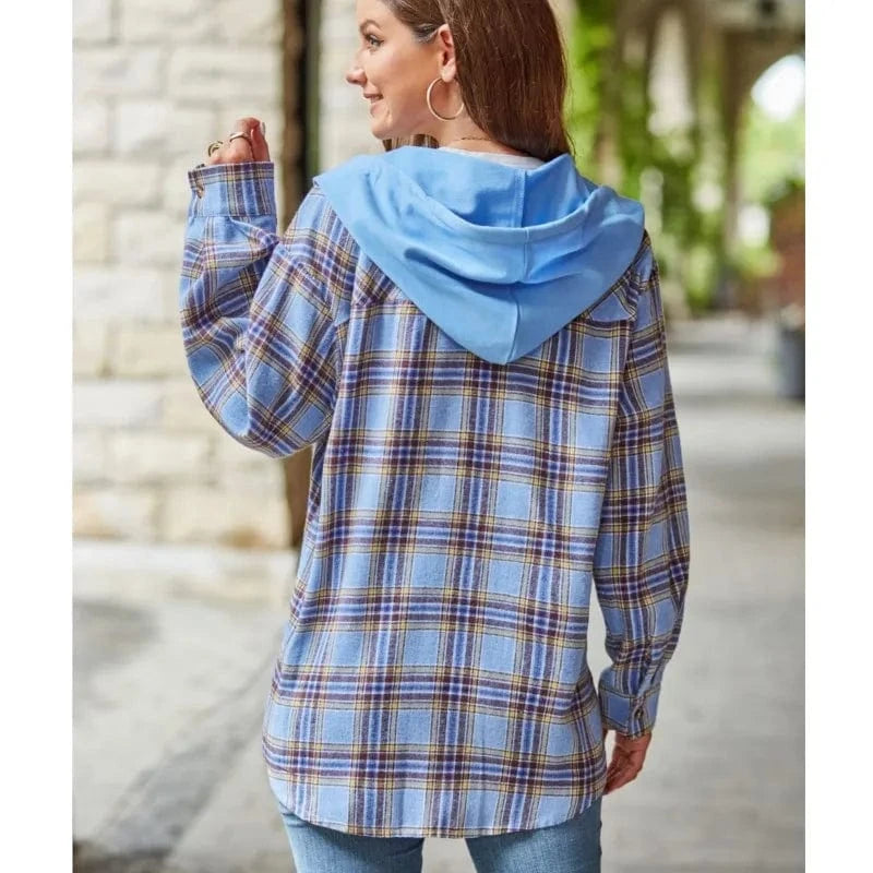 Rutig skjorta med huva för dam – perfekt balans mellan stil och komfort