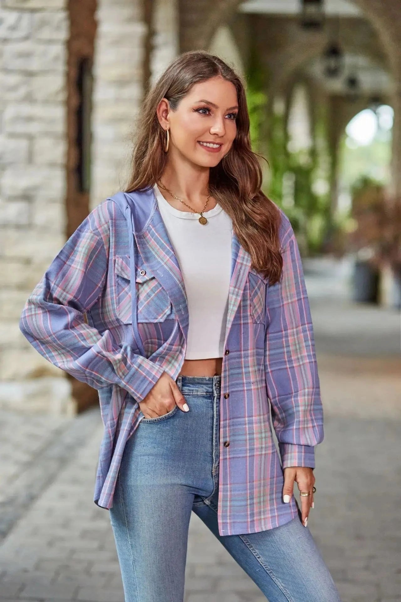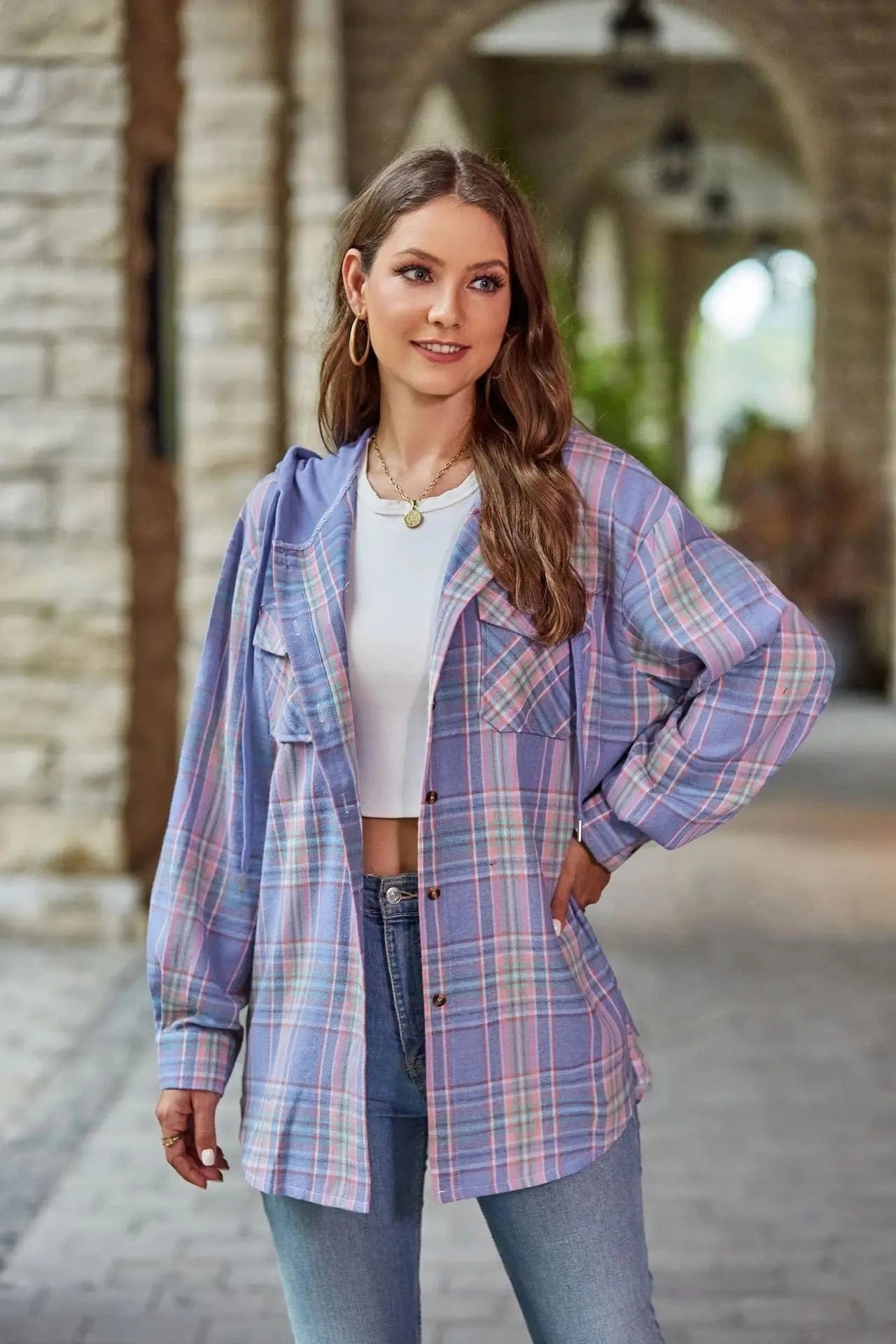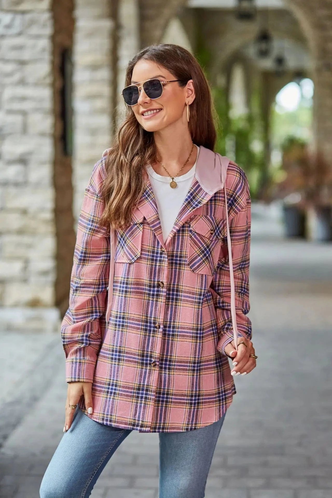 Rutig skjorta med huva för dam – perfekt balans mellan stil och komfort