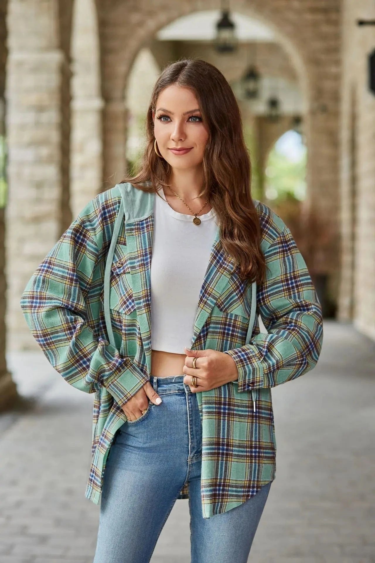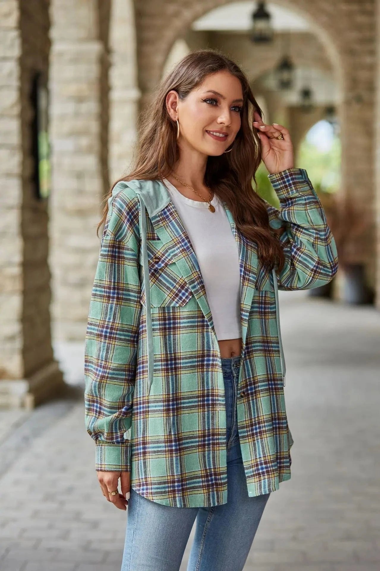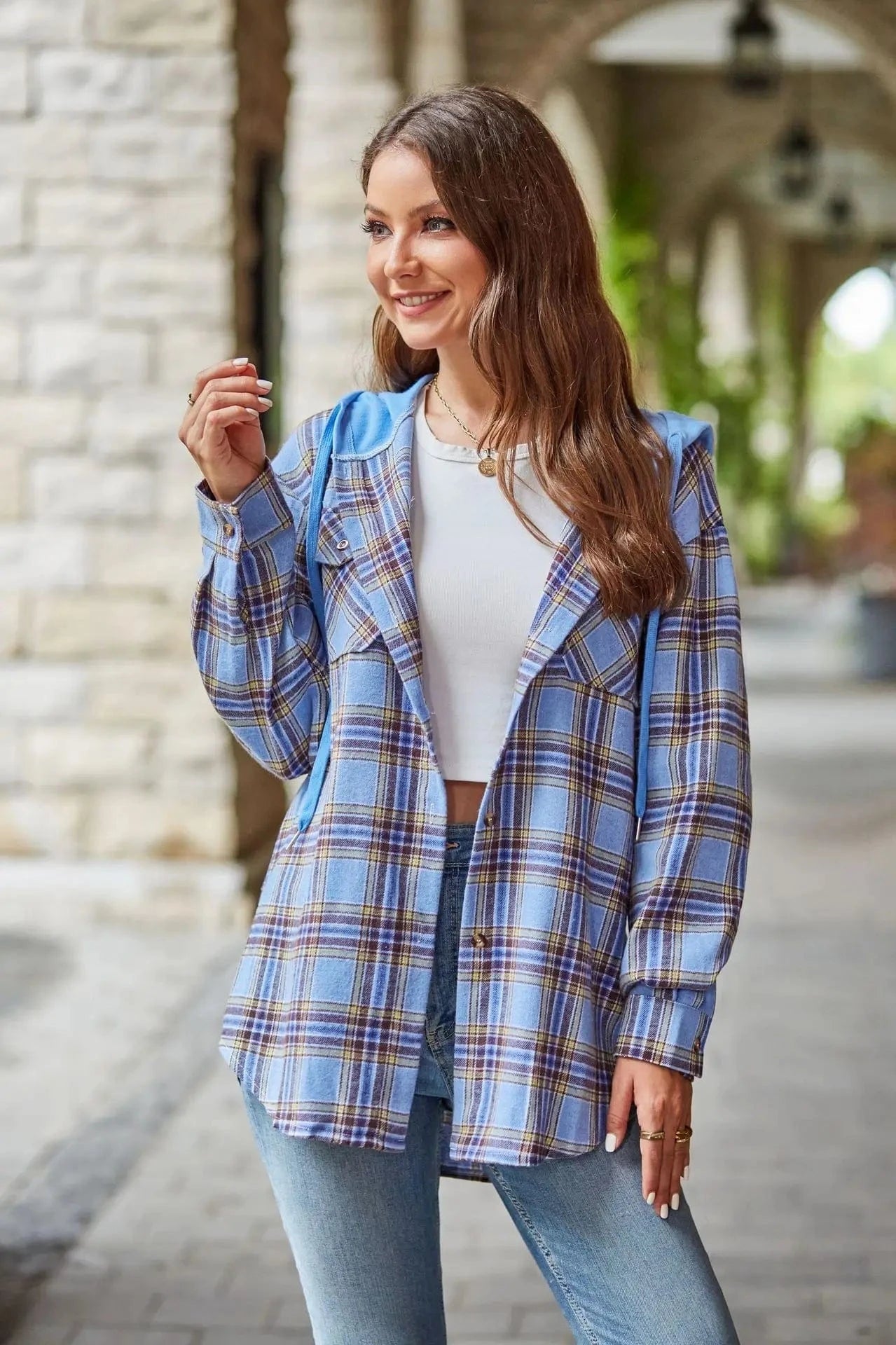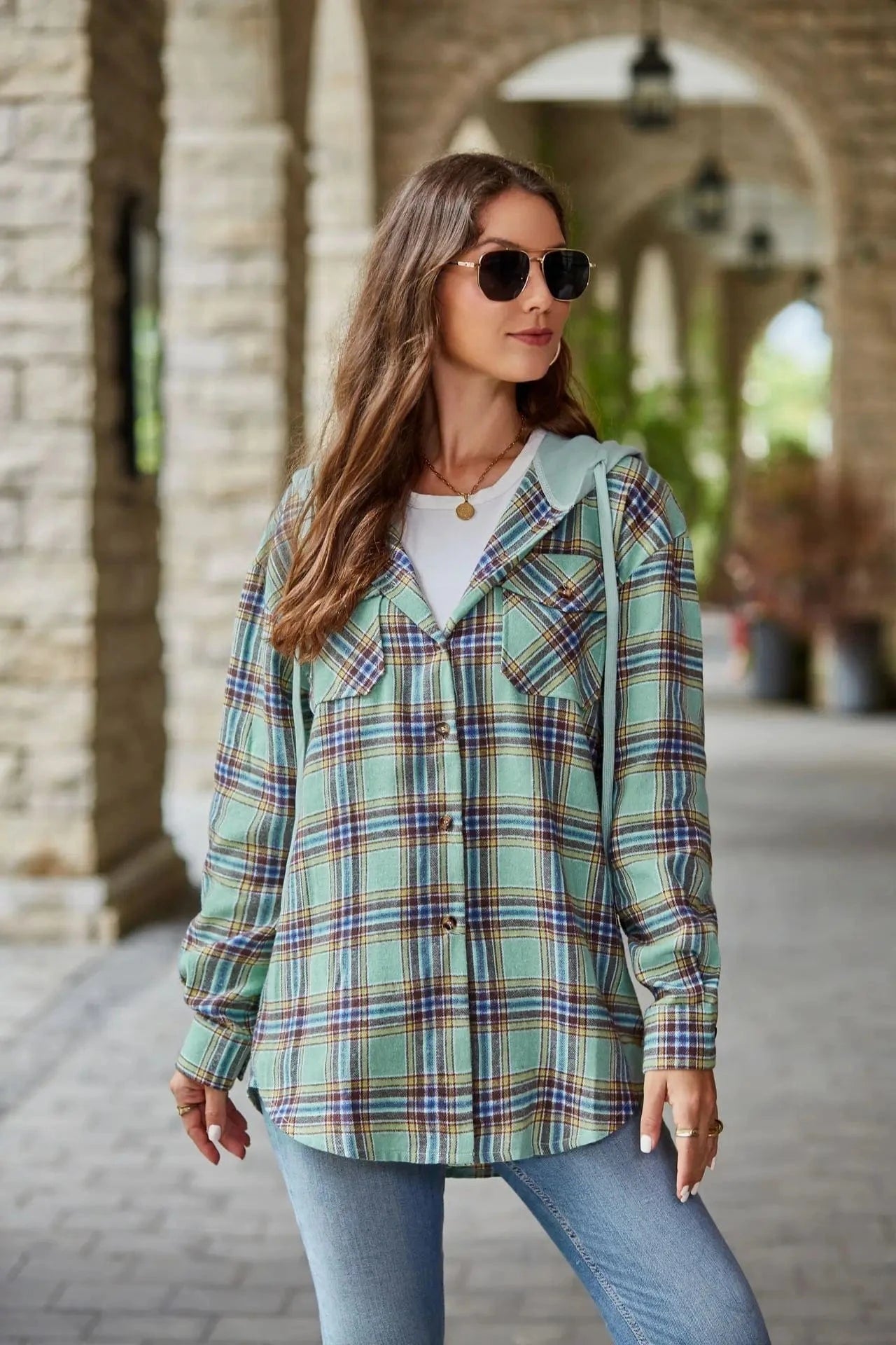 Rutig skjorta med huva för dam – perfekt balans mellan stil och komfort