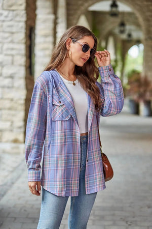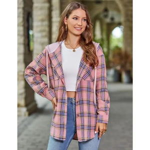 Låt din vardagsstil få nytt liv med vår rutiga skjorta med huva för dam – en smart mix av ledig elegans och bekväm funktion. Den här skjortan passar lika bra till stadspromenader som till avslappnade helgutflykter.