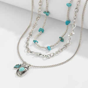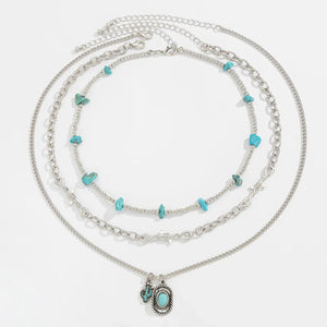 Set med tre silverfärgade westernhalsband med turkos som lyfter varje outfit