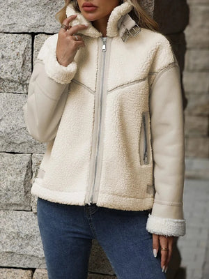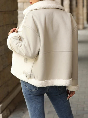 Shearlingjacka dam i teddy och skinnimitation – mysig värme och tidlös stil