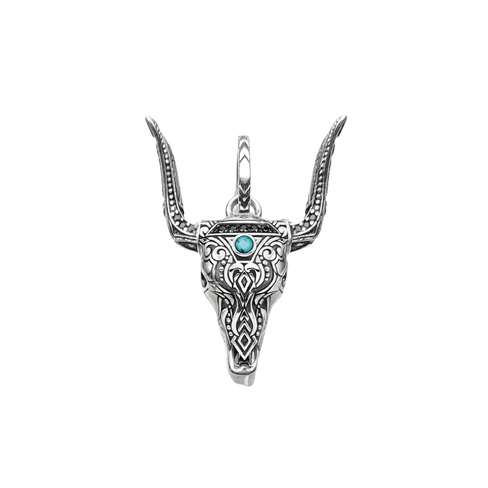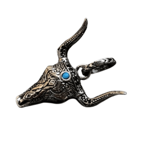 Silverhänge med tjurskalle och turkos – en djärv symbol för styrka och frihet