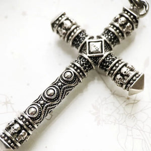 Ge din outfit ett smycke som är lika kraftfullt som symboliskt – en korsberlock som förenar tradition, styrka och en hint av mörk mystik.