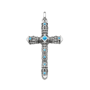 Silverkors med turkos och dödskallar