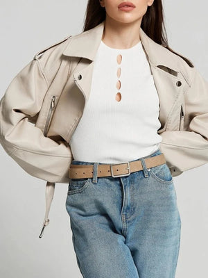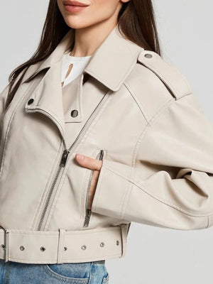 Låt din stil tala för sig själv med denna skinnimitation jacka för dam – en perfekt kombination av modern biker-attityd och klassisk westerncharm. En jacka som förvandlar varje outfit till ett statement.
