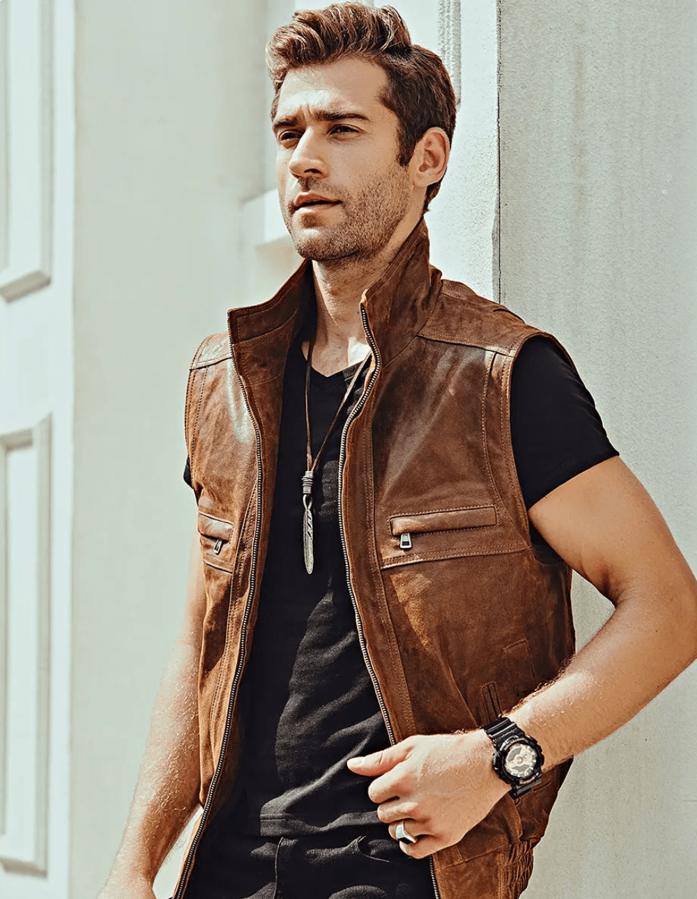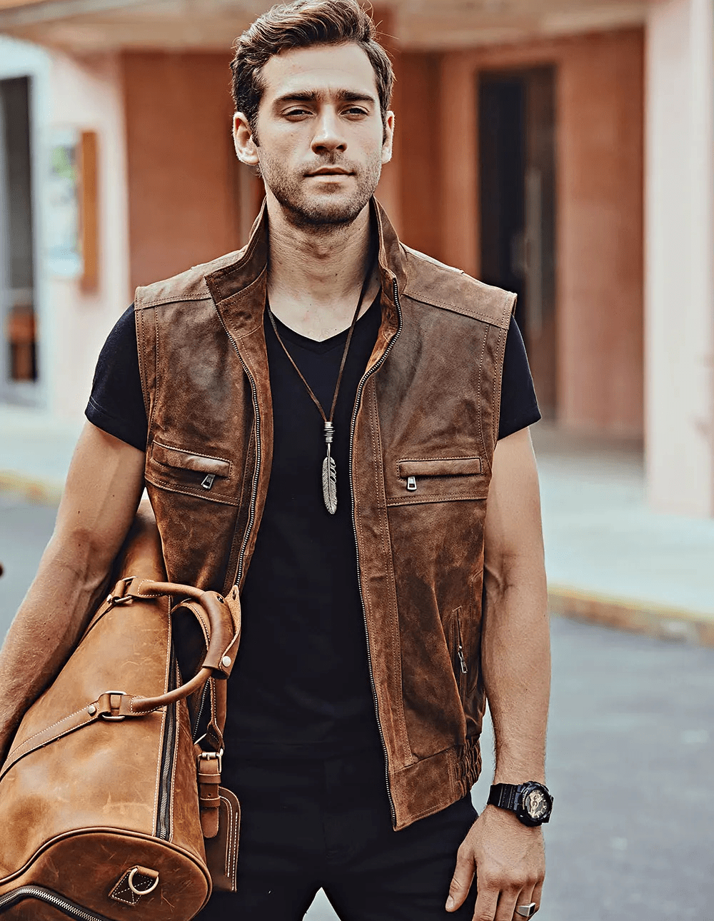 Skinnväst herr brun: Rå stil och tidlös komfort för din garderob