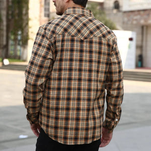 - Tidlös västernstil: Klassisk rutig design med turn-down-krage och en diskret touch av cowboykänsla.