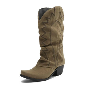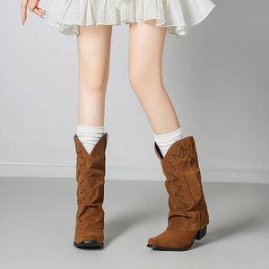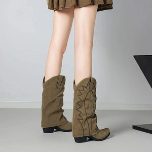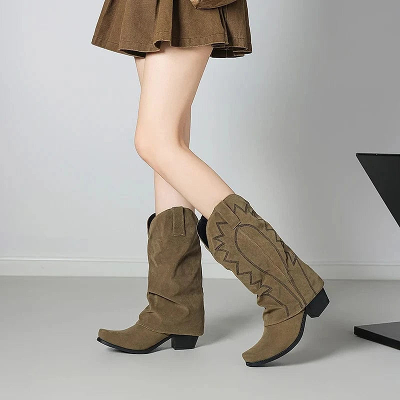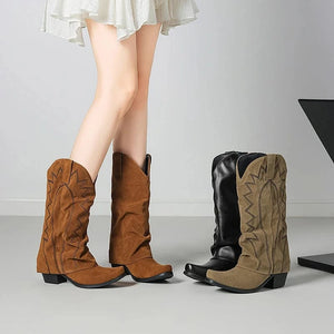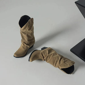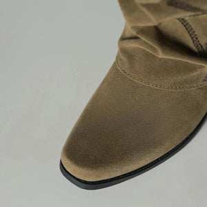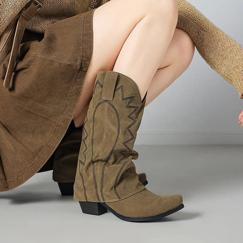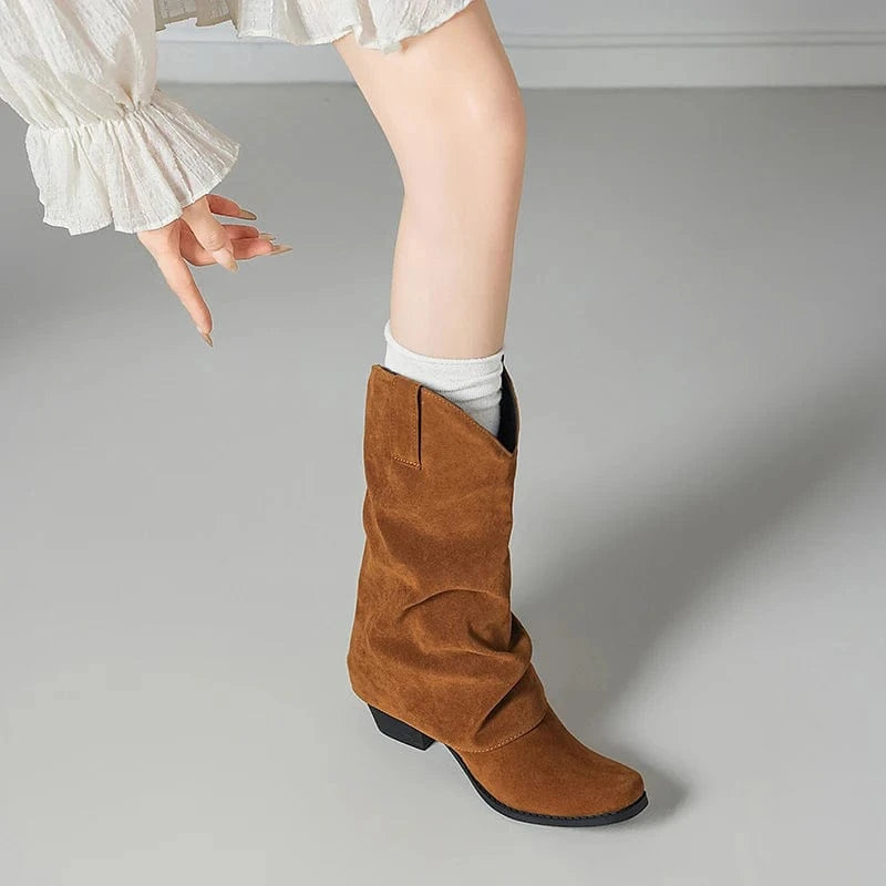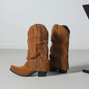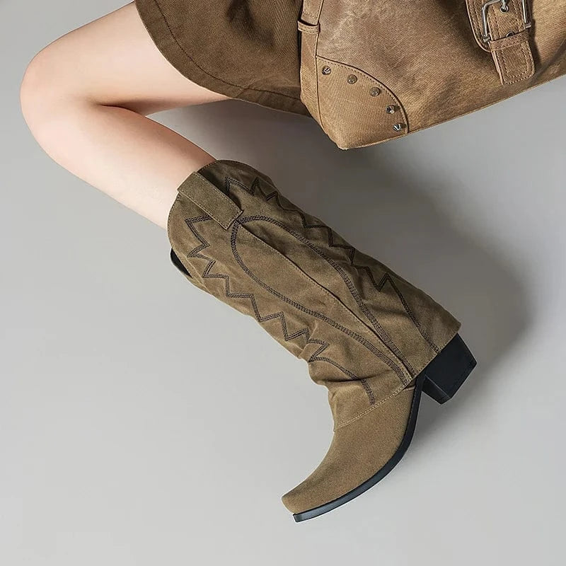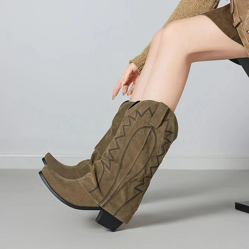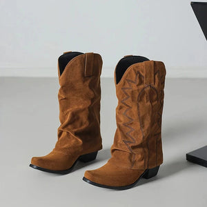 Slouchiga cowboyboots i mocka för dam : där avslappnad elegans möter westernanda