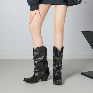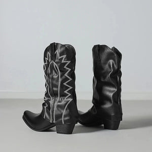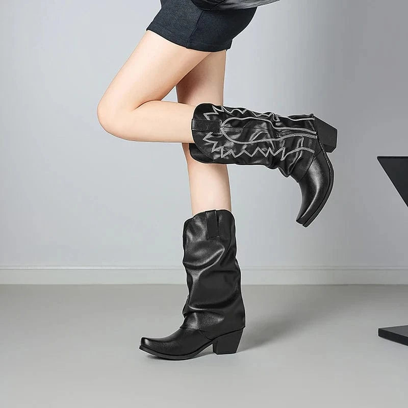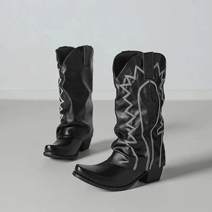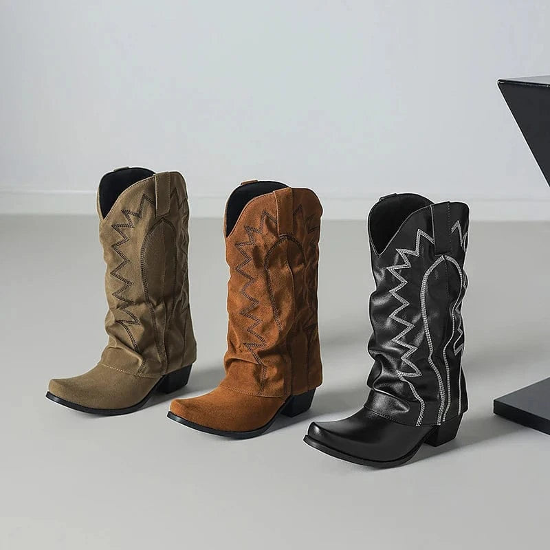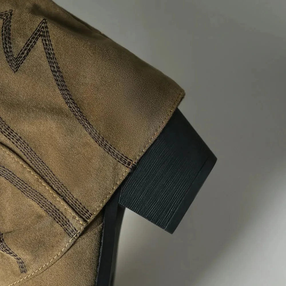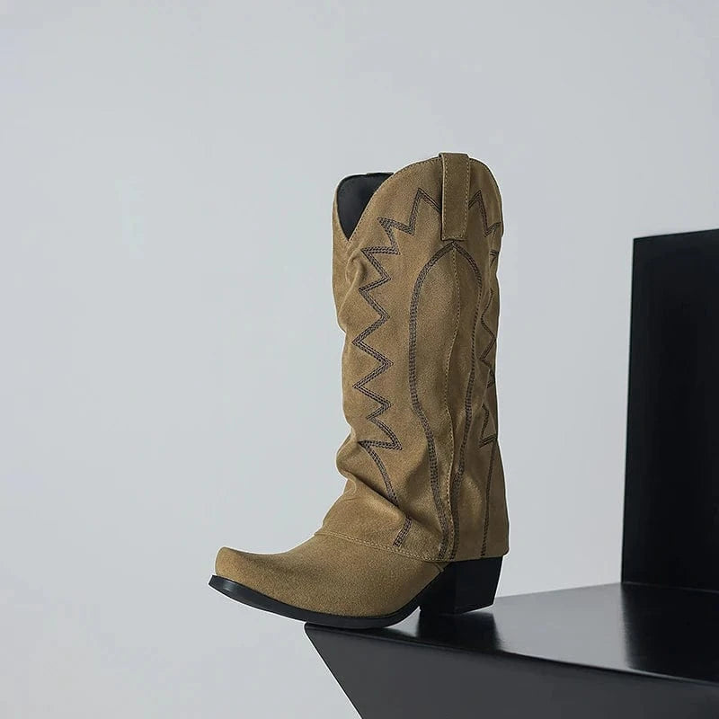 Upptäck en tidlös stil som förenar vintagecharm med modern komfort. Dessa slouchiga cowboyboots i mjuk mocka är skapade för dig som älskar frihet, attityd och autenticitet – både i vardagen och på dansgolvet. Med sin böljande siluett och dekorativa sömmar ger de varje outfit en självsäker touch av westernromantik.