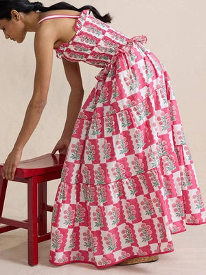 Upptäck en klänning som kombinerar romantisk charm med en avslappnad känsla – perfekt för varma sommardagar, picknickar och strandpromenader.
