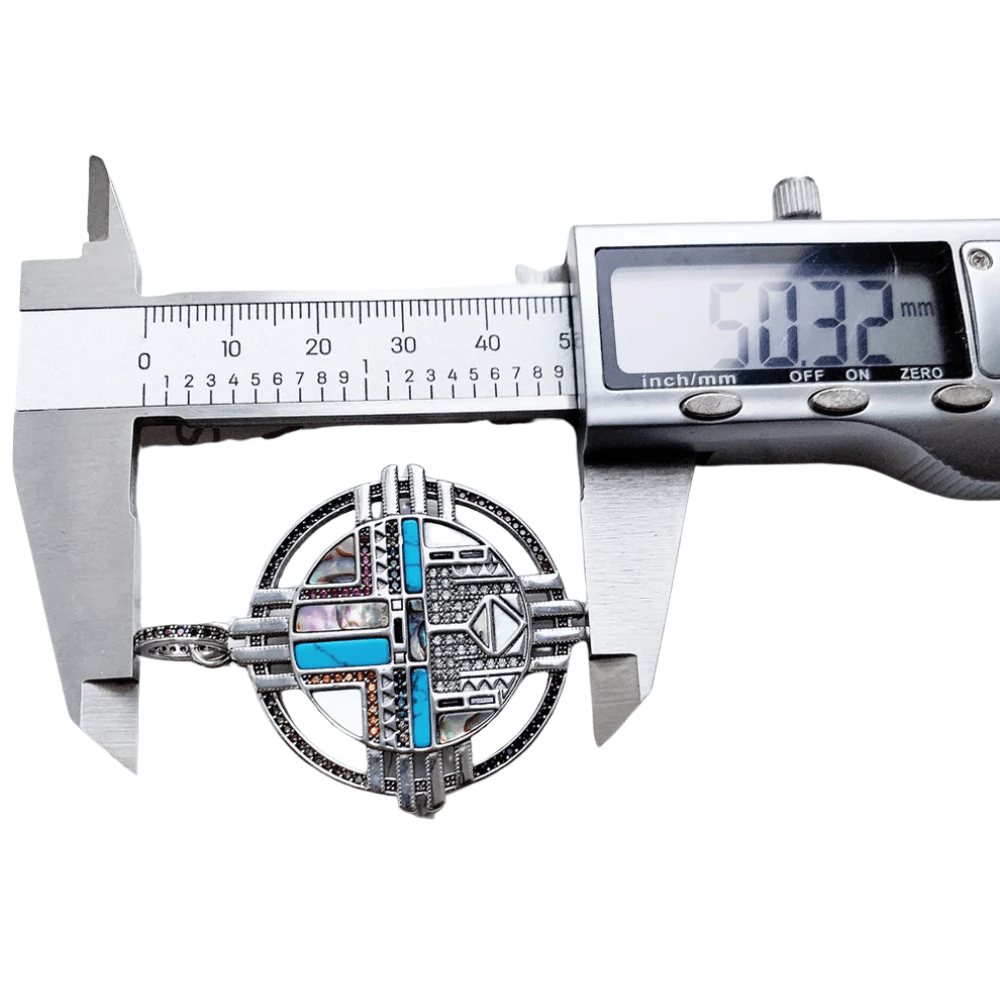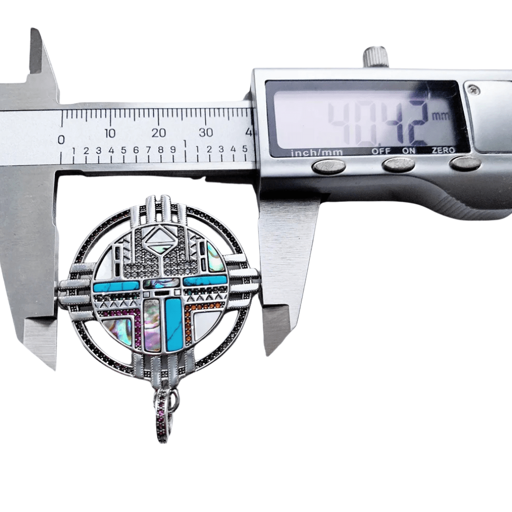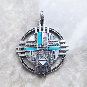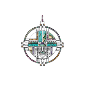 Låt solens kraft lysa genom din stil. Detta hänge i äkta silver, rikt dekorerat med turkos och pärlemor, är inspirerat av sydvästlig symbolik och fångar känslan av frihet, styrka och bohemisk elegans.