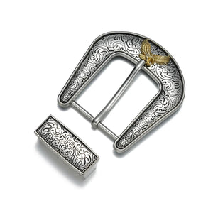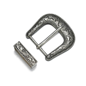 Spännesats i silver med gravyr för westernbälte – din eleganta touch av cowboystil