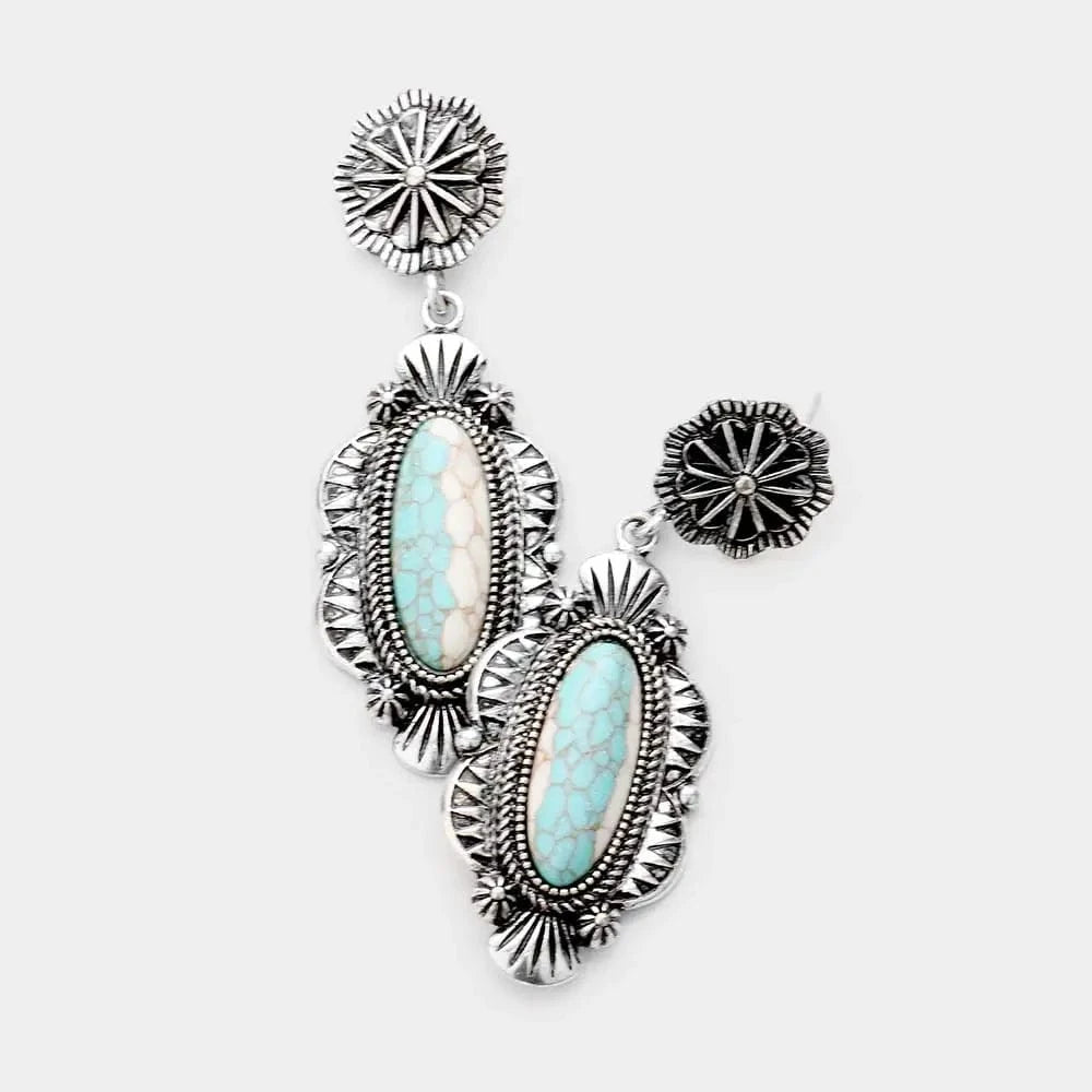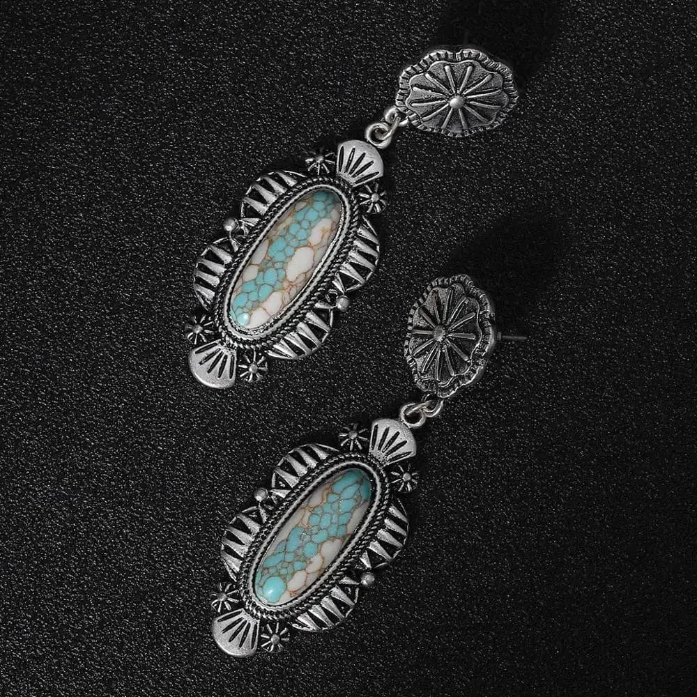 Statement-örhängen i silver med turkos – låt din western-glam ta plats